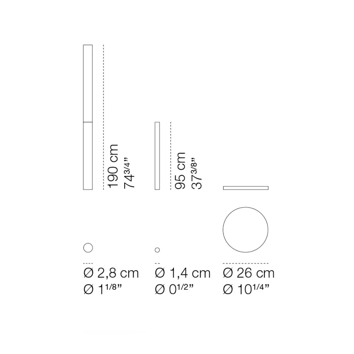 | Sonstige Maße: | Leuchte: Ø 2,8 x 190 cm, Vase: Ø 1,4 x 95 cm |