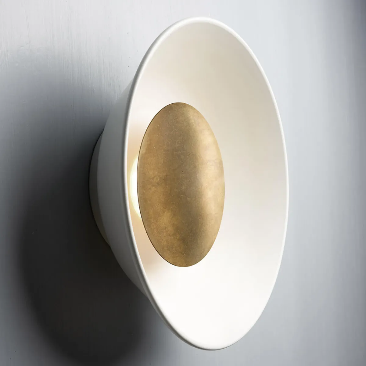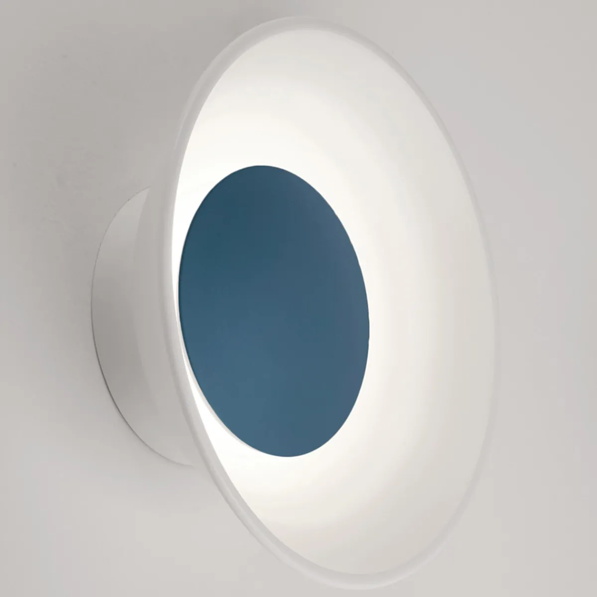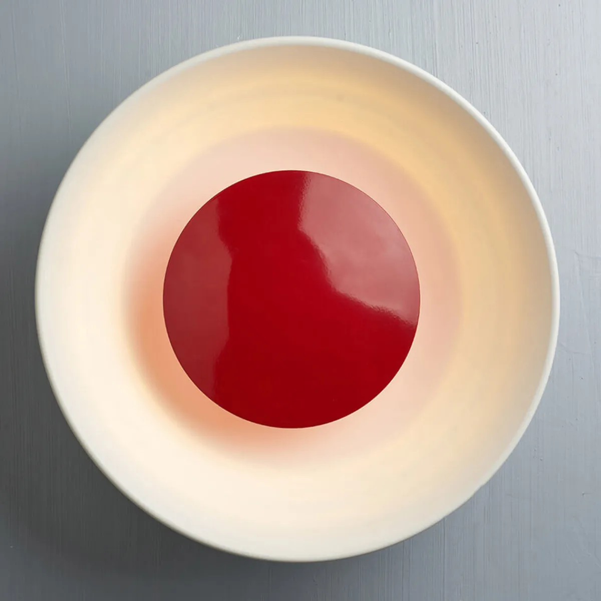 - Schalenförmige Wandleuchte mit je einer anders farbigen Abdeckung im Zentrum der