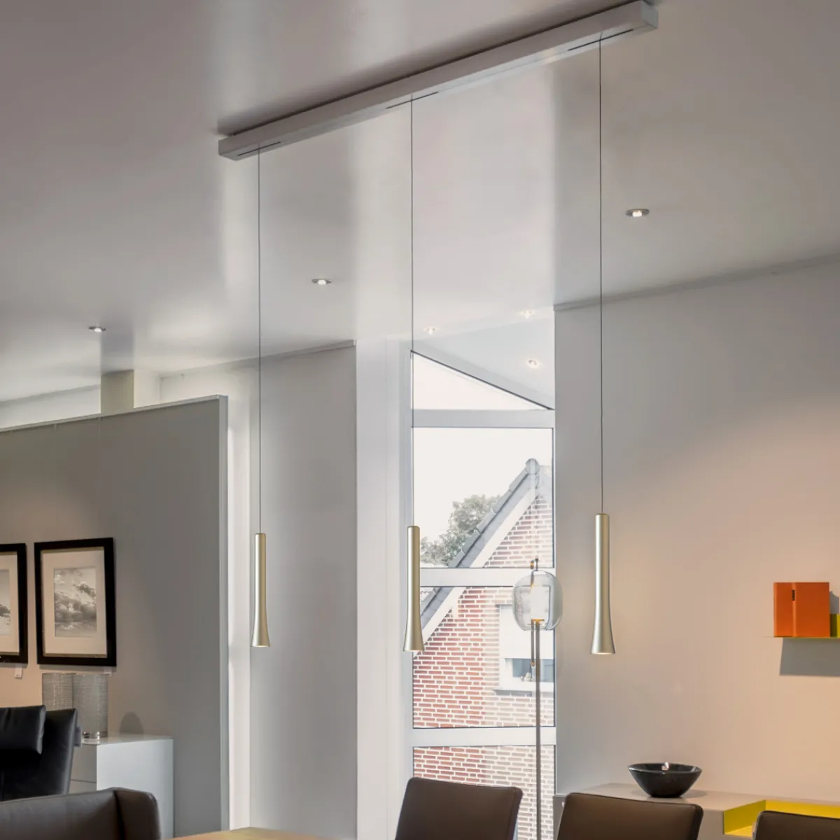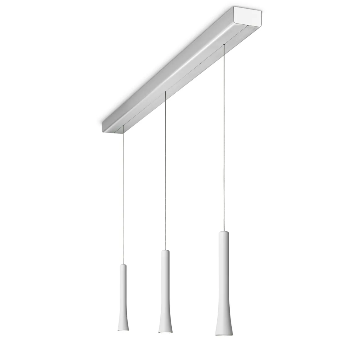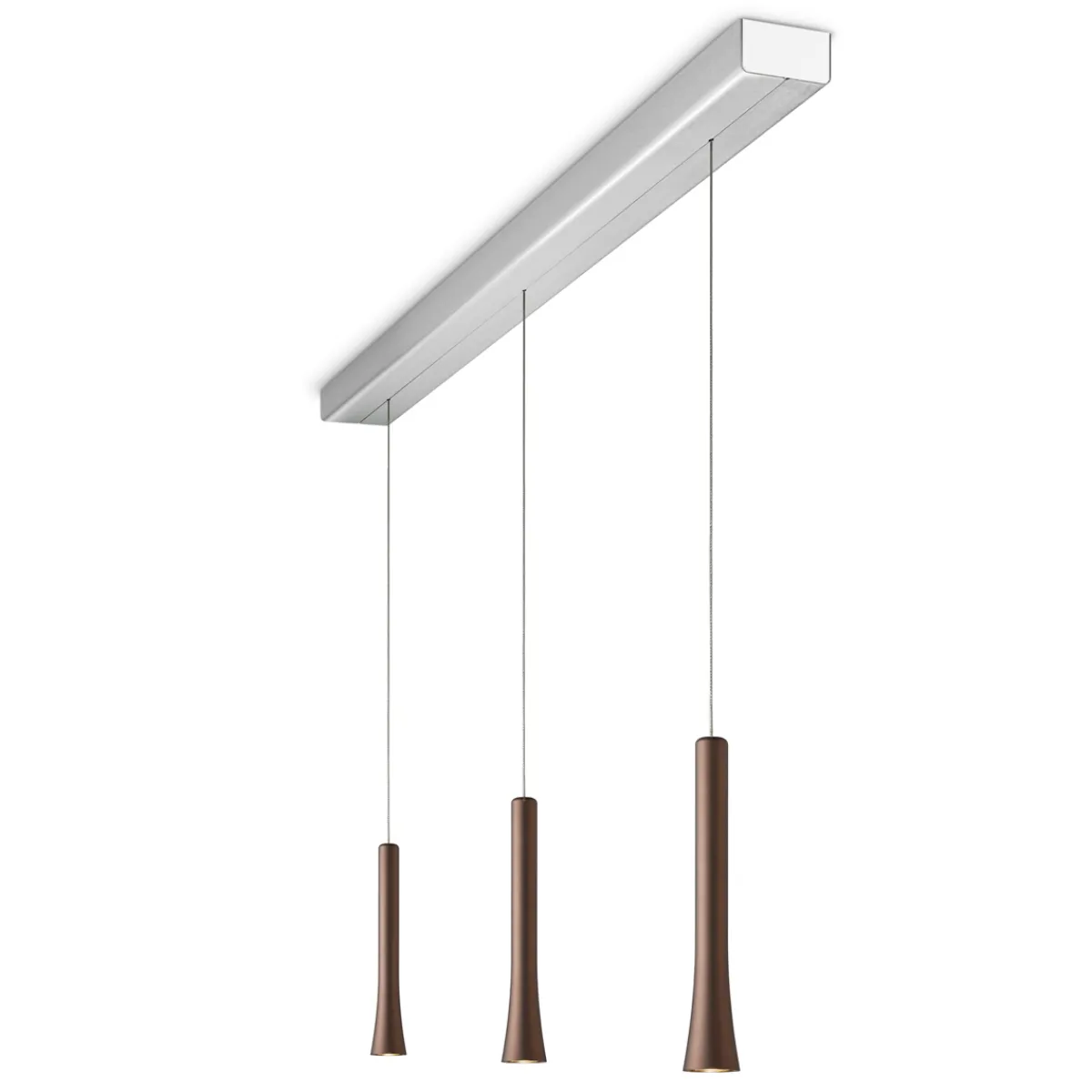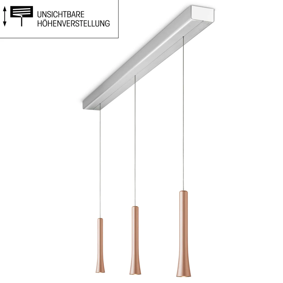 Die dreiflammige Oligo Rio LED Pendelleuchte ist eine funktionelle, zugleich stilvolle Lichtquelle, die sich vor allem über länglichen Esstischen empfiehlt. Die verfügt über einen unsichtbar im Baldachin integrierten Kabelaufzug, der eine stufenlose Höhenverstellerung ermöglicht (Verstellbereich 70 bis 230 cm). Durch einfaches Bewegen der Leuchtenpendel lässt sich die Pendelhöhe wunschgerecht einstellen – leichtgängig und komfortabel.