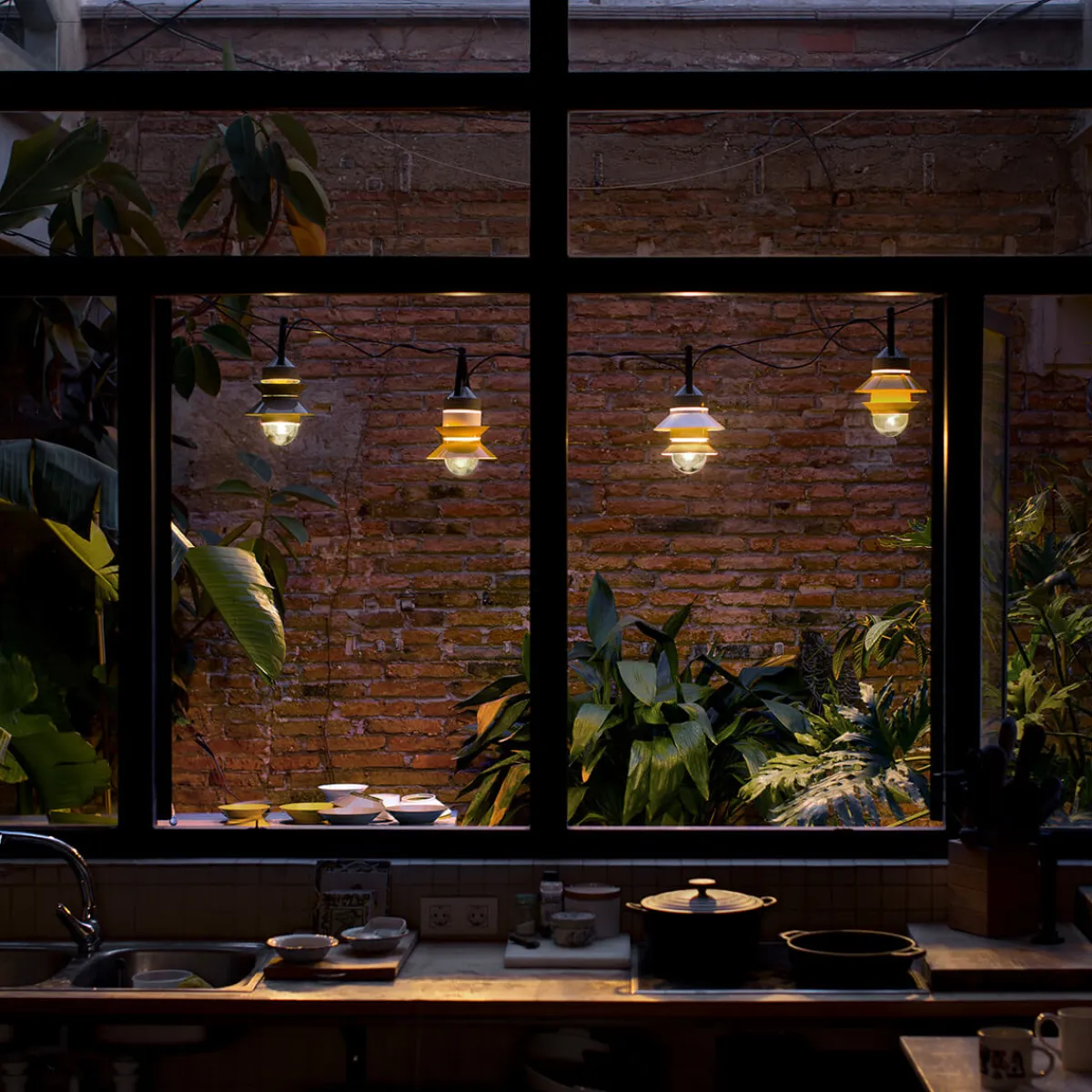 Die Santorini Pendellampe bringt mediterranes Flair und funktionales Outdoor-Design auf stilvolle Weise zusammen. Entworfen vom spanischen Sputnik Estudio und inspiriert von den traditionellen Laternen der Fischerboote, schafft sie eine einzigartige Verbindung zwischen maritimer Ästhetik und moderner Lichtgestaltung. Ob einzeln oder in Serie arrangiert – die setzt über Esstischen und Theken auf Balkonen oder überdachten Terrassen wirkungsvolle Lichtakzente und sorgt für eine stimmungsvolle Atmosphäre unter freiem Himmel.