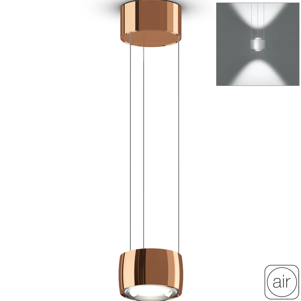 - Variable Verteilung der Lichtleistung zwischen Up- und Downlight möglich (Occhio fading)