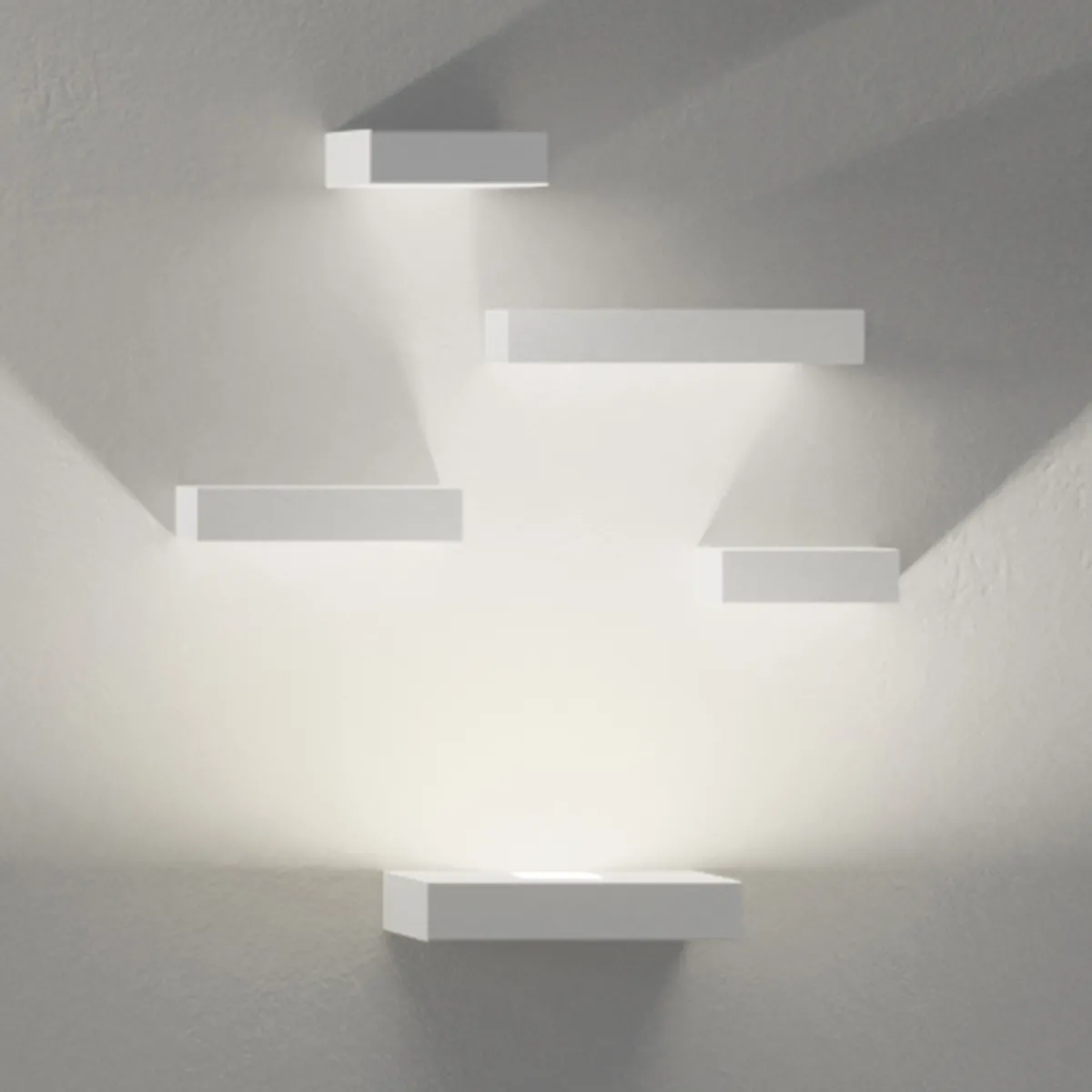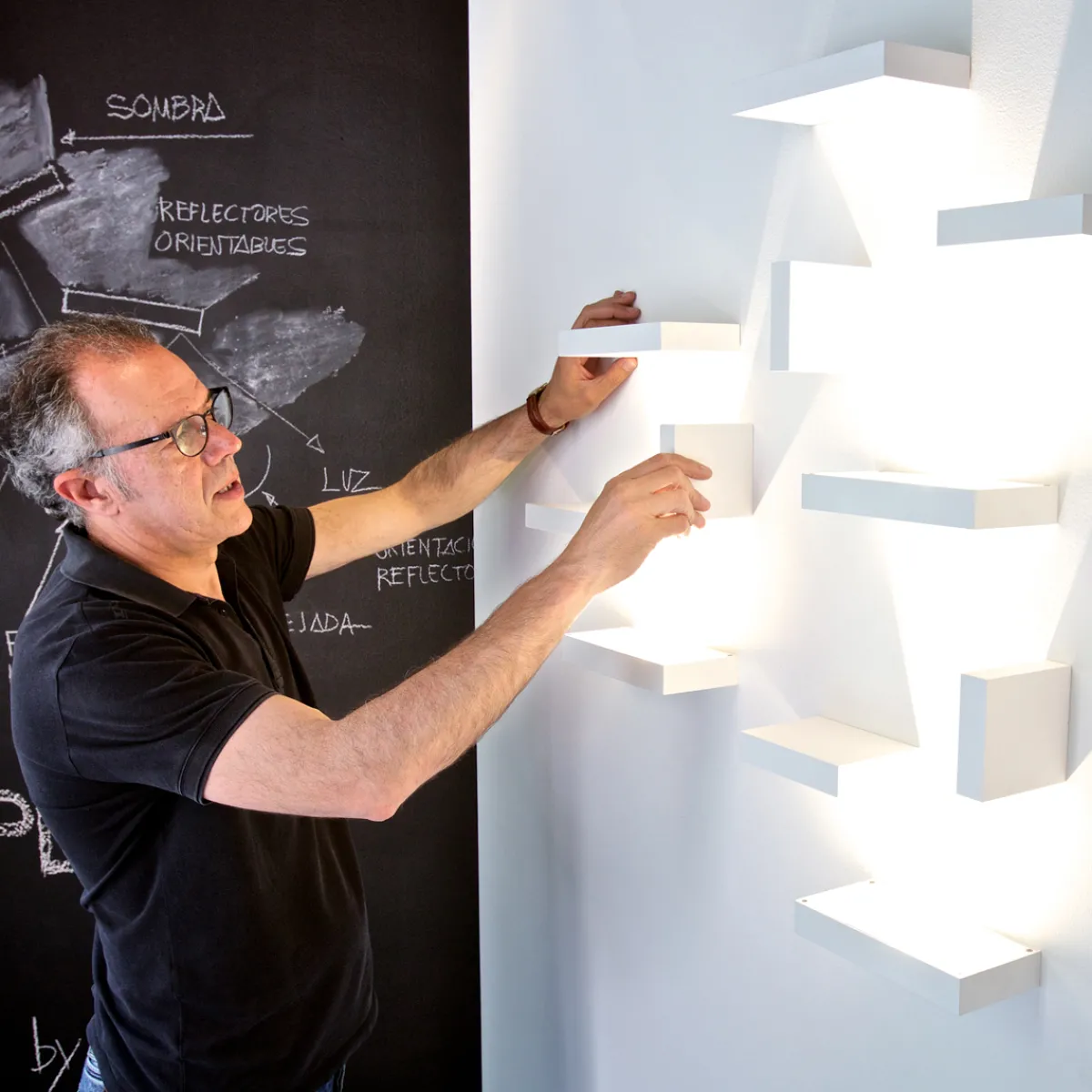 Mit der Set 7753 von Vibia werden Sie selbst zum Lichtgestalter und zaubern außergewöhnliche Lichtspiele an die Wände Ihrer Innenräume. Die Wandlampe – aus einfachen geometrischen Einzelteilen aufgebaut – überrascht durch dekorative Lichteffekte, die sich aus dem wechselvollen Spiel aus Licht und Schatten ergeben, aus Reflektionen und die Plastizität der Körper betonenden Lichtstrahlen.