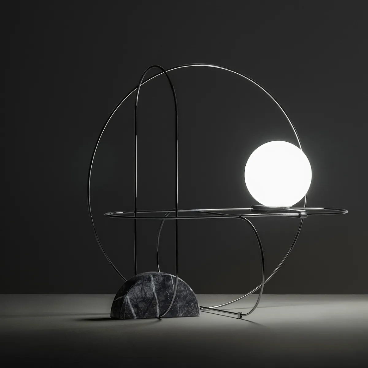 - Mit Marmorsockel und filigraner Metallstruktur