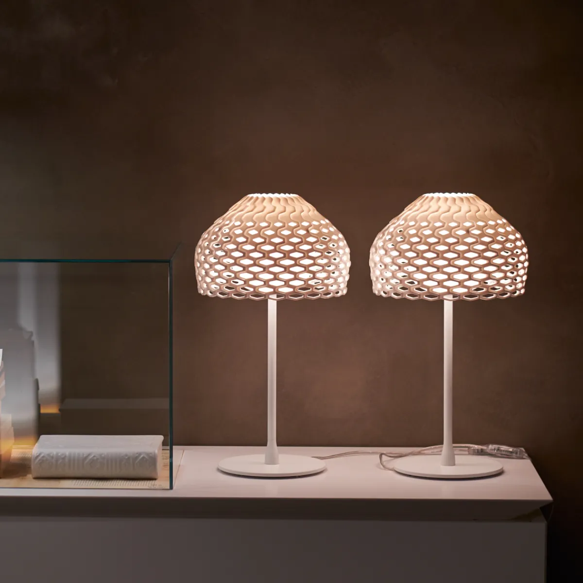 - Originelle Tischleuchte mit kunstvoll perforiertem Schirm