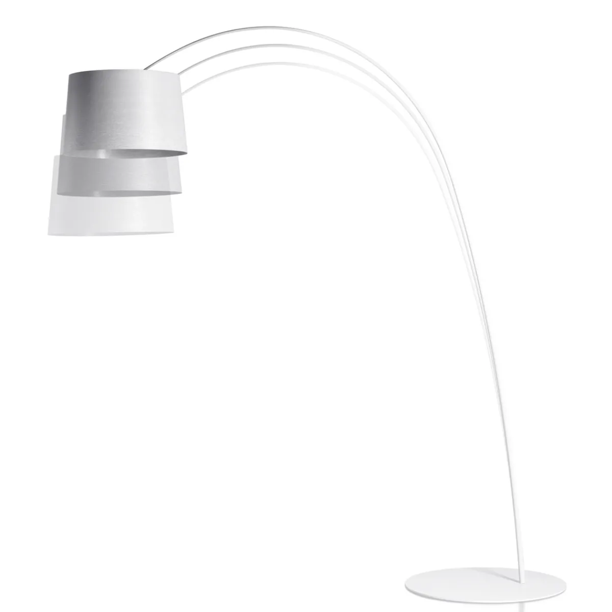 Der breite, lichtundurchlässige Schirm – charakteristisches Designelement der Foscarini Twiggy Bogenleuchte – gewährleistet einen ausreichenden Blendschutz und sorgt für eine Fokussierung des Lichts nach unten hin. Da er an seiner Oberseite zusätzlich mit einer transparenten Schutzplatte ausgestattet ist, wird das Licht gleichzeitig auch zur Decke hin reflektiert.