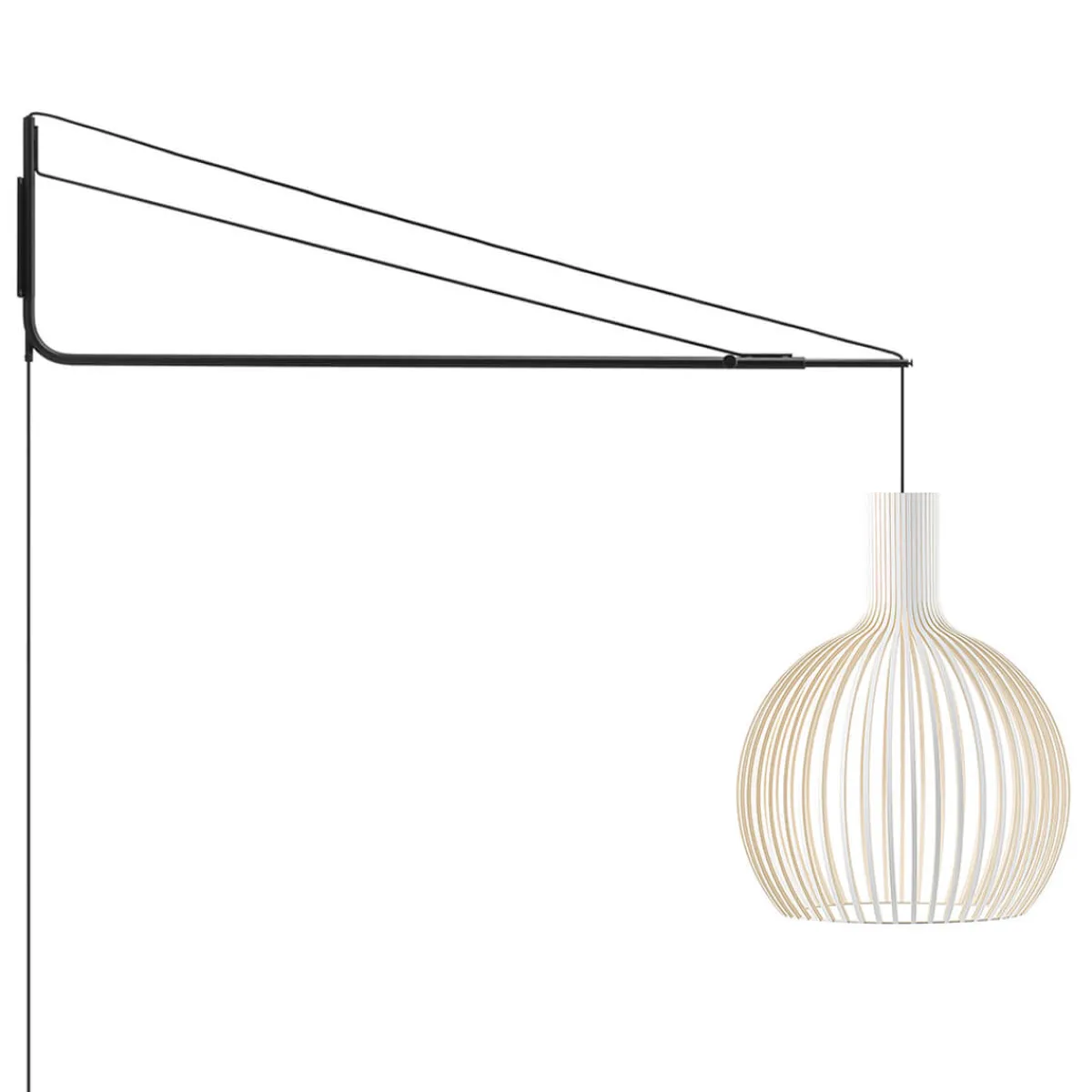 Die Wandhalterung der Varsi 1000 wird mittels vier Schrauben an der Wand befestigt (Schrauben nicht inbegriffen). Bitte beachten Sie bei der Auswahl der Schrauben Aspekte wie Hebelwirkung sowie Material und Stärke der Raumwände. Die gewünschte Pendelhöhe des Octo 4240 Schirms kann über zwei Schrauben am Wandarm justiert werden.