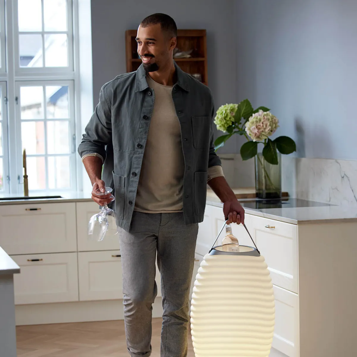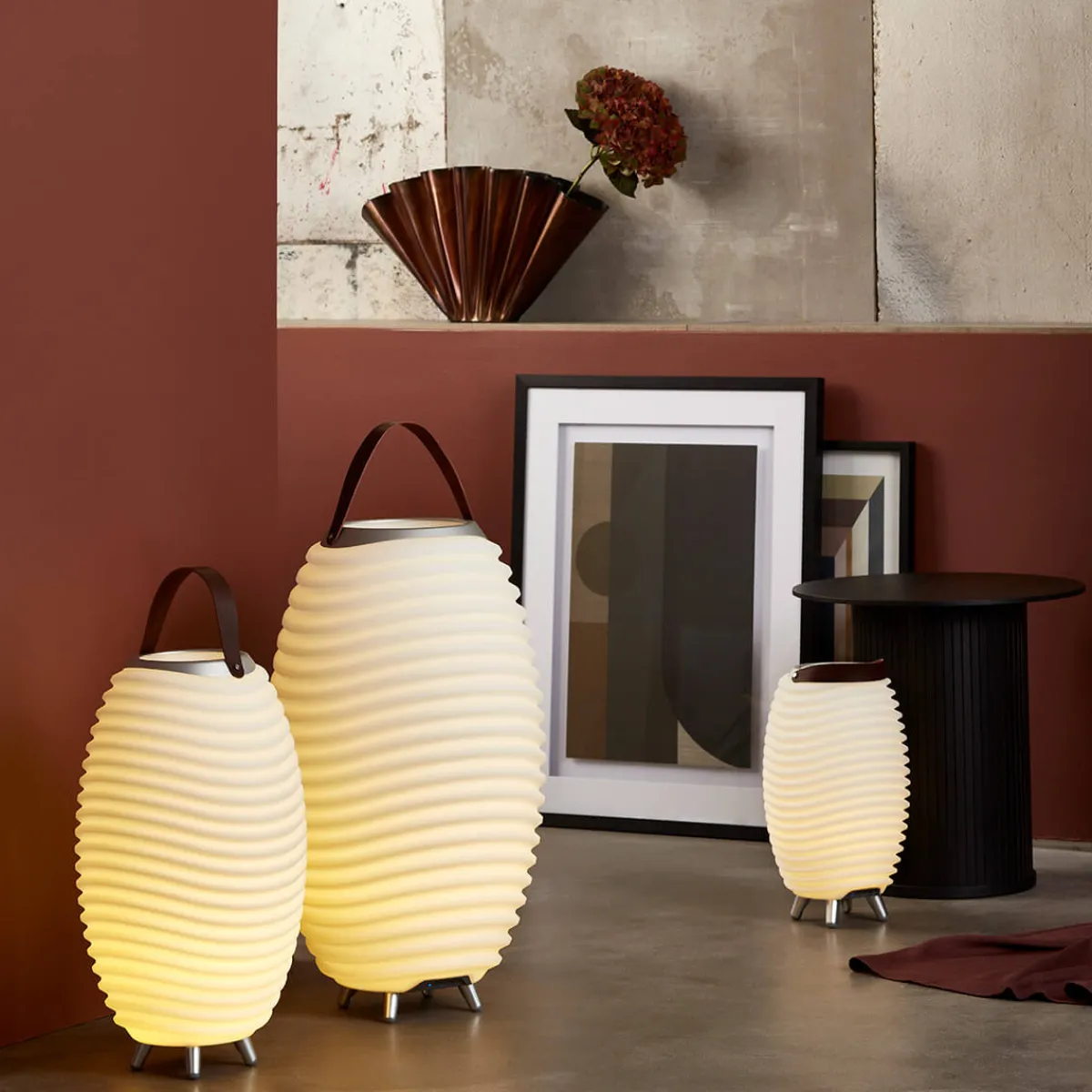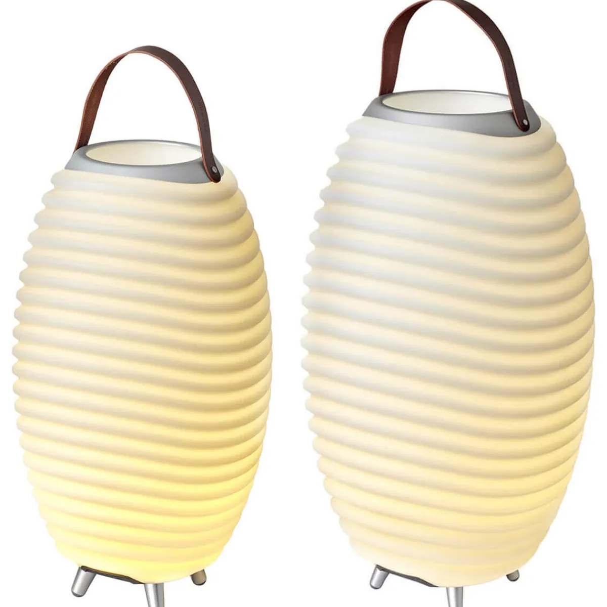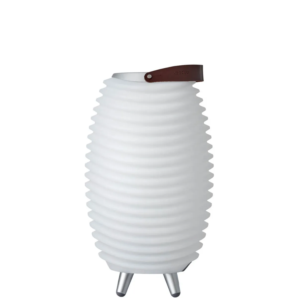 Während die mittlere und große Kooduu Synergy als Bodenleuchten konzipiert worden sind, kann die Small-Version auch auf Tischflächen oder Kommoden Platz finden. Alle Versionen verfügen über ein wasserdichtes Innenfach, das sich als Behälter für Getränke, Eiswürfel oder Blumengestecke eignet. Das Fassungsvermögen beträgt bei der Synergy Small 1,3 Liter, bei der Synergy Stereo LED Medium 2 Liter und bei der Synergy Stereo LED Large 4,8 Liter.