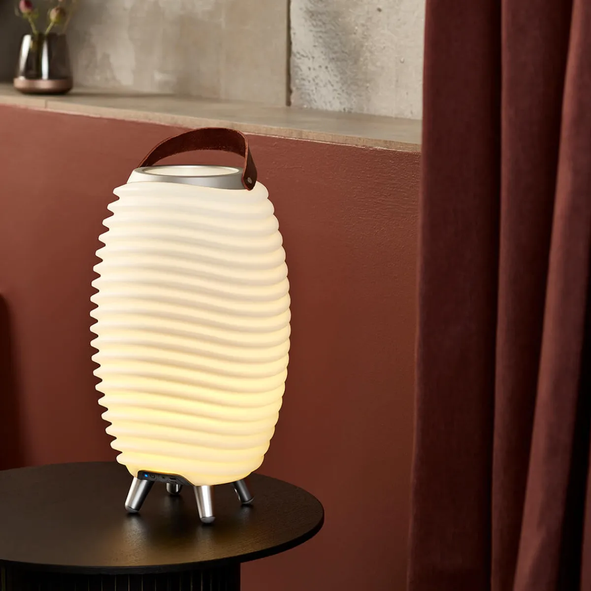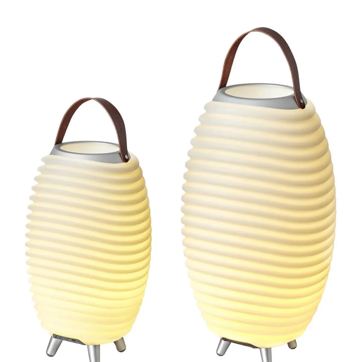 Wiederaufgeladen werden die Soundleuchten über einen im Sockel befindlichen USB-C-Anschluss. USB-C-Ladekabel sind hierzu im Lieferumfang enthalten. Als Adapter können Sie handelsübliche Handy-Ladegeräte mit max. 5 Volt 2 Ampere verwenden (passende USB-Adapter sind als optionales Zubehör erhältlich).