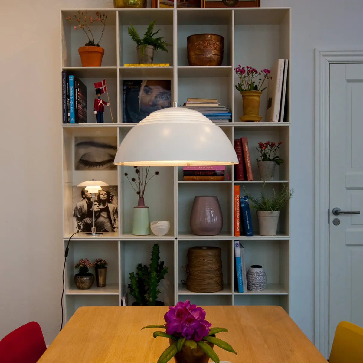 - Abgestufte Ringlamellen aus Stahl erzeugen ein sanftes Indirektlicht
