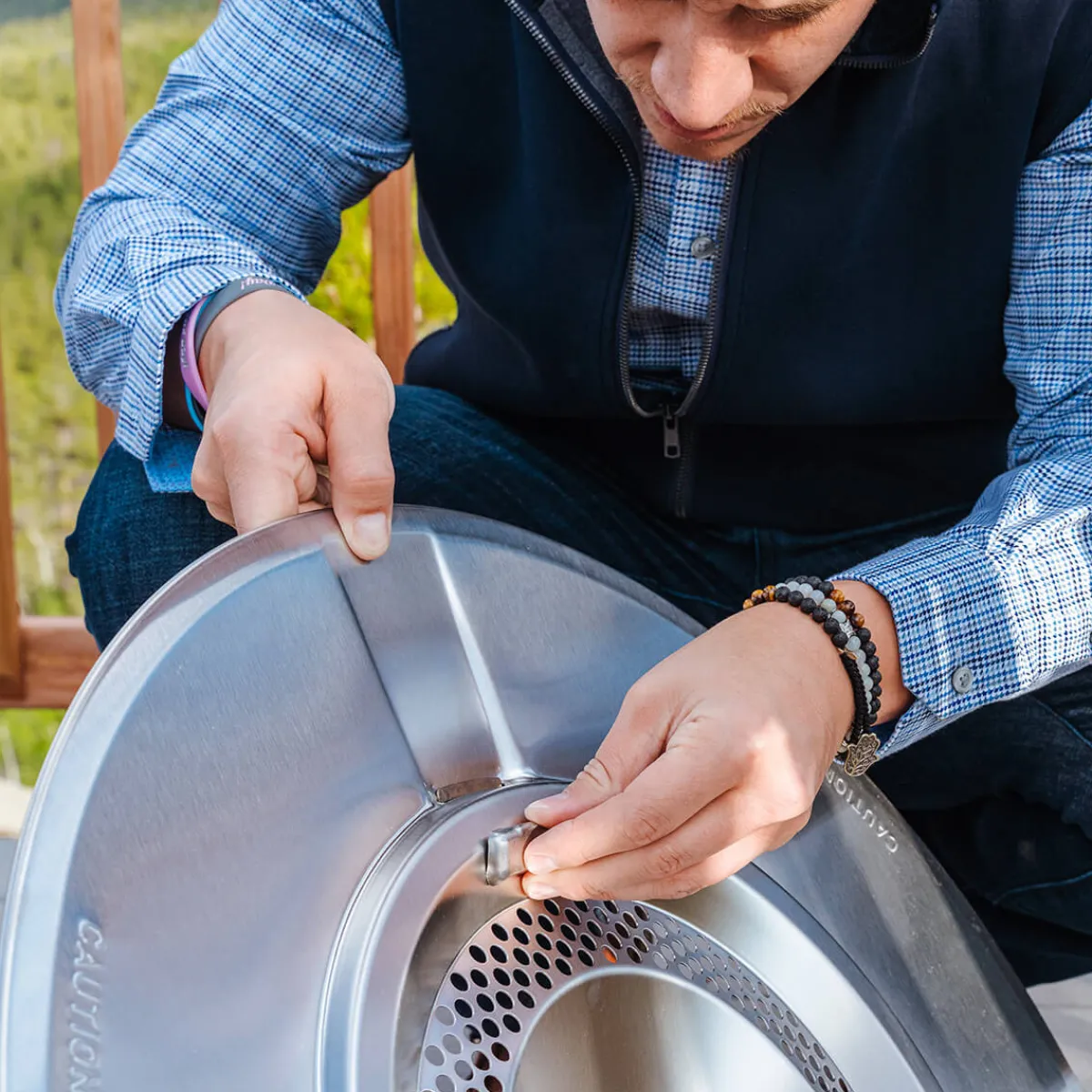 Der Bonfire Wärmeverteiler von Solo Stove lenkt die Wärme Ihrer Feuerschale effizient um und vergrößert so den erzeugten Wärmeradius. Auf diese Weise genießen Sie und Ihre Gäste noch mehr Komfort am Feuer, egal zu welcher Jahreszeit. Warme Füße und Beine garantiert!