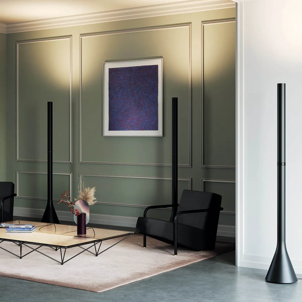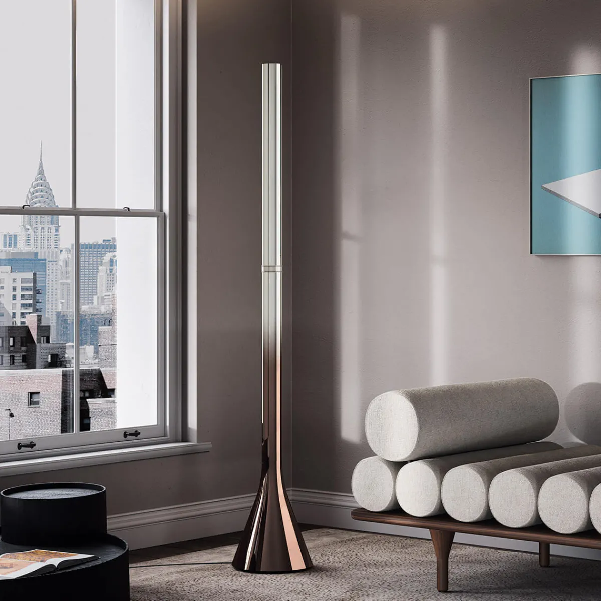 Erhältlich sind die Cima Stehlampen von Lodes in glanzvollen oder matten Farbvarianten, sodass sie sich für unterschiedlichste Raumkonzepte eignen. Besonders glamourös wirken die Lampen in Bronze und Grün: Das metallisch anmutende Finish wechselt hierbei nach oben hin von Bronze zu Nickel bzw. Grün zu Schwarz – ein reizvoller Ombré-Effekt, der die schmuckvolle Äshetik unterstreicht.
