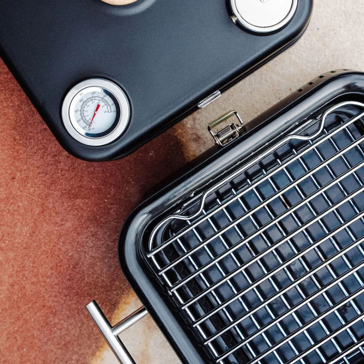 - Kompakter Holzkohlegrill in modern-elegantem Design