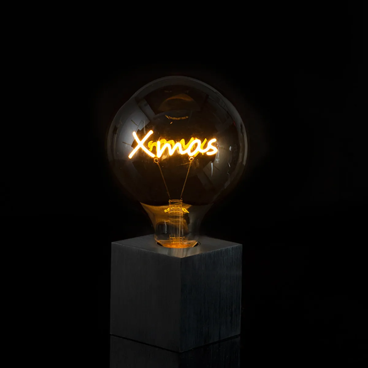- Veredelter Sockel in Schwarz mit fest montiertem Kabel und Schnurschalter