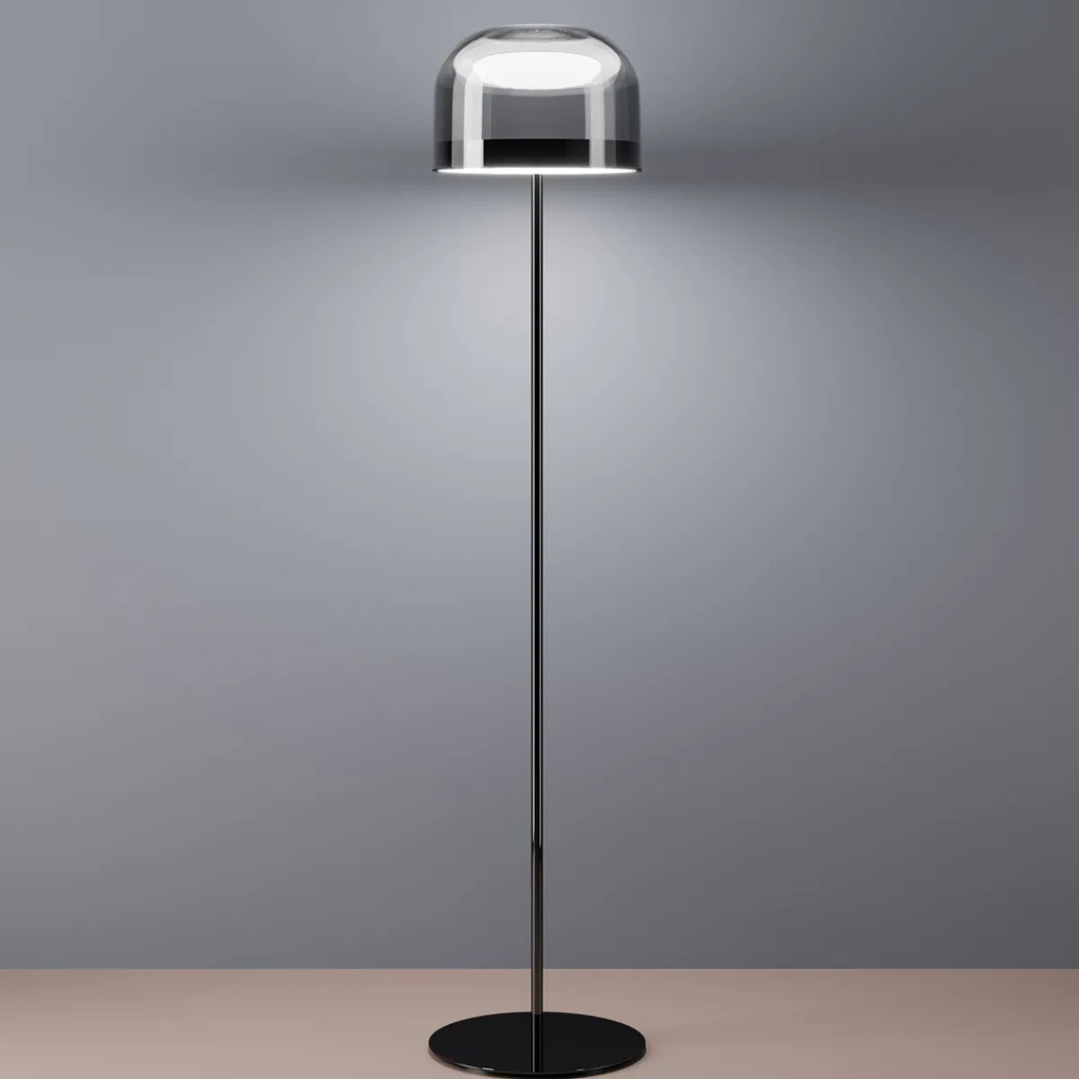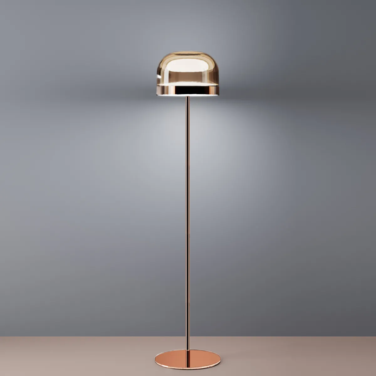 - Mit gerundetem, von innen her erleuchtetem Glasschirm in grauer oder taupefarbener Tönung