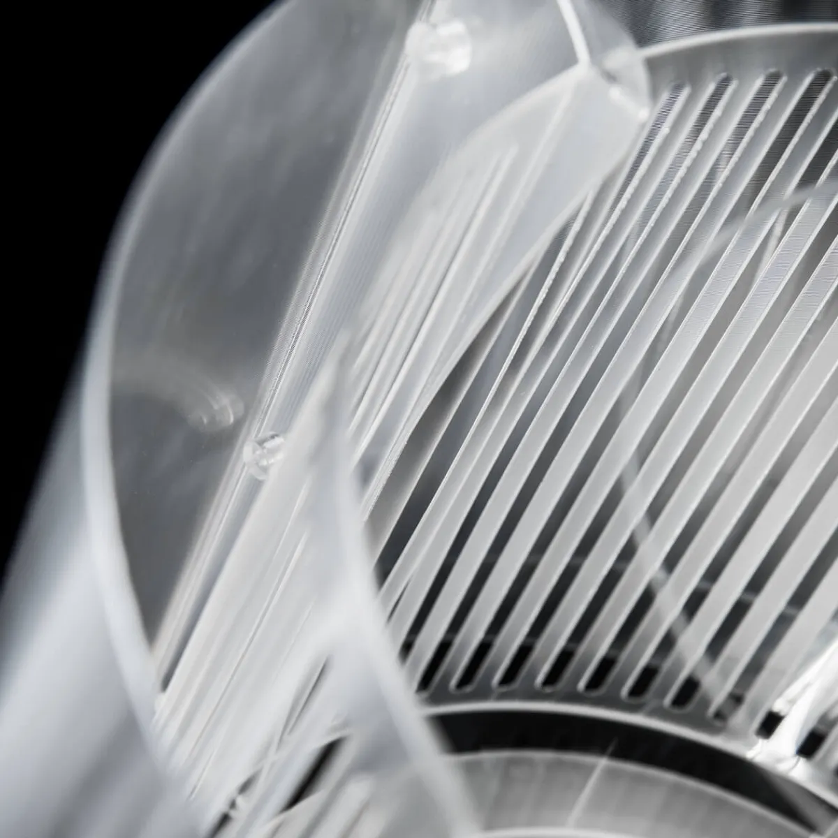 Der Korpus der Liza Tischleuchte besteht aus teiltransparentem Lentiflex®, innovativen Technopolymeren, die sich durch Widerstandsfähigkeit und eine besondere Brillanz auszeichnen. Der Lampenschirm ist von schmalen vertikalen Schnitten überzogen. Diese erzeugen, sobald die eingeschaltet ist, ein dekoratives Spiel aus Licht und Schatten, das sich auch auf die umliegenden Flächen projiziert.