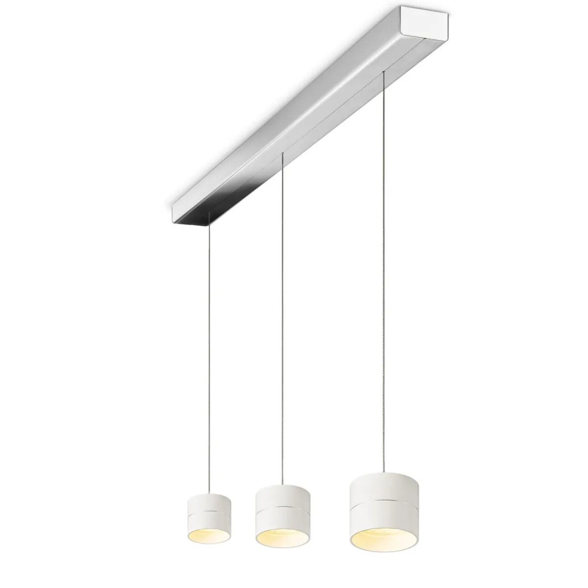 Die dreiflammige Tudor S Pendelleuchte verfügt über zwei Optionen zur Lichtsteuerung: Über den in der Zuleitung integrierten Tastdimmer lassen sich die Pendelmodule schalten und dimmen. Noch komfortabler gestaltet es sich mit der Smartphone-Funktion, die es erlaubt, die gesamte – auch die – via Casambi-App vom Smartphone oder Tablet aus zu steuern.