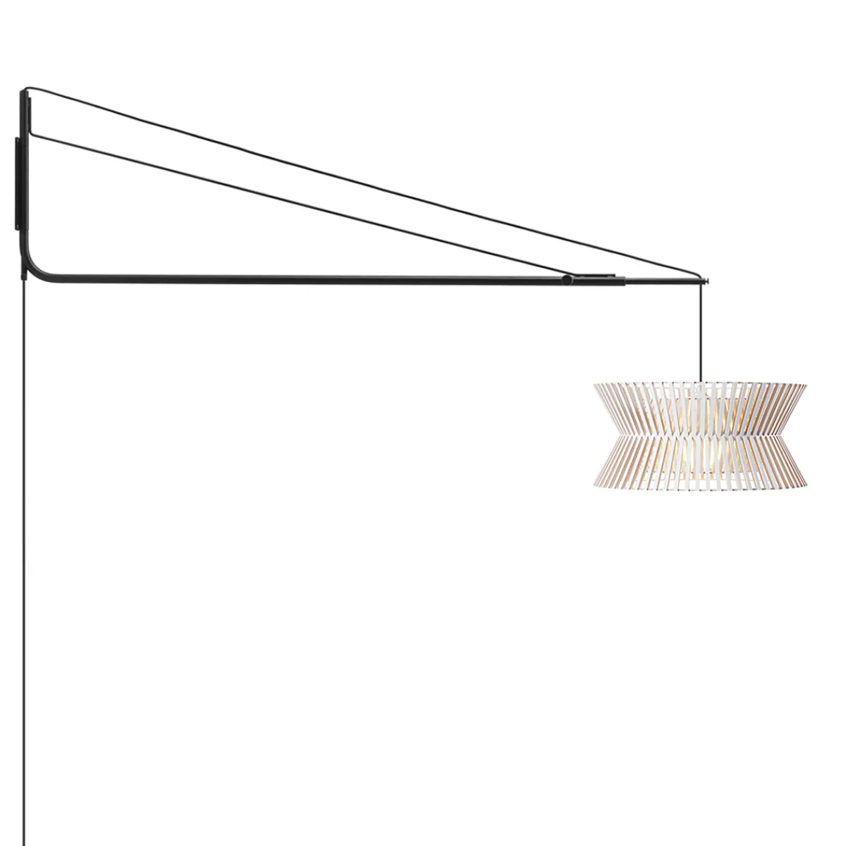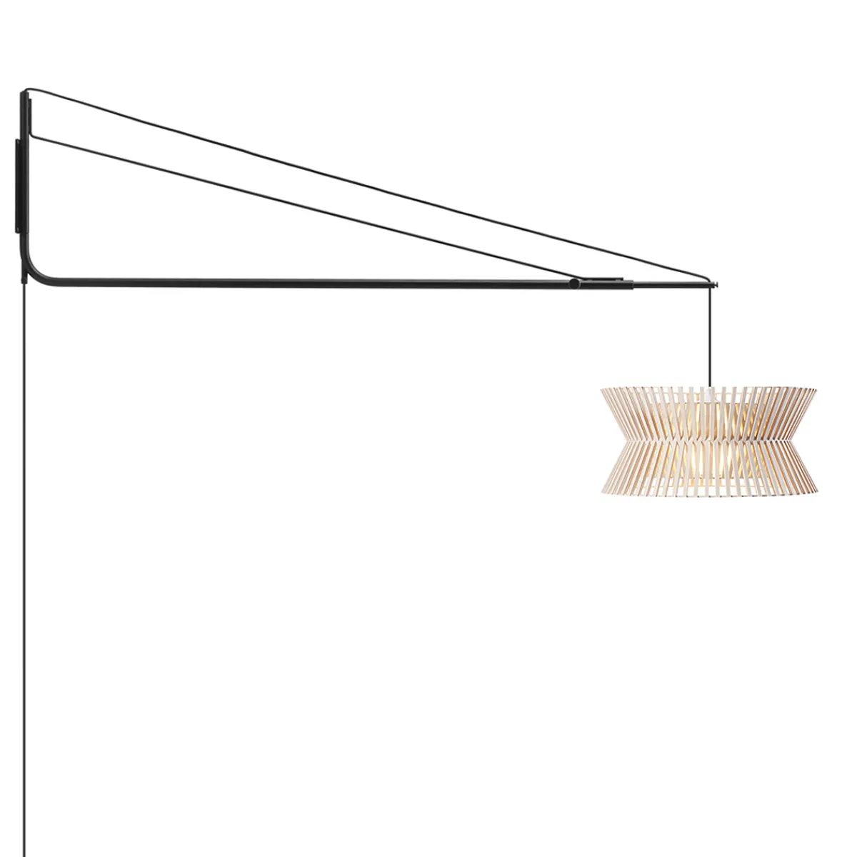 Die Wandhalterung der Varsi 1000 wird mittels vier Schrauben an der Wand befestigt (Schrauben nicht inbegriffen). Bitte beachten Sie bei der Auswahl der Schrauben Aspekte wie Hebelwirkung sowie Material und Stärke der Raumwände. Die gewünschte Pendelhöhe des Kontro 6000 Schirms kann über zwei Schrauben am Wandarm justiert werden.
