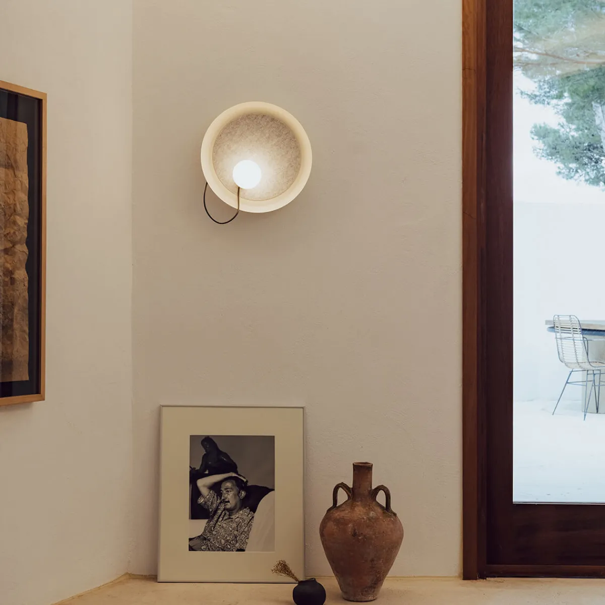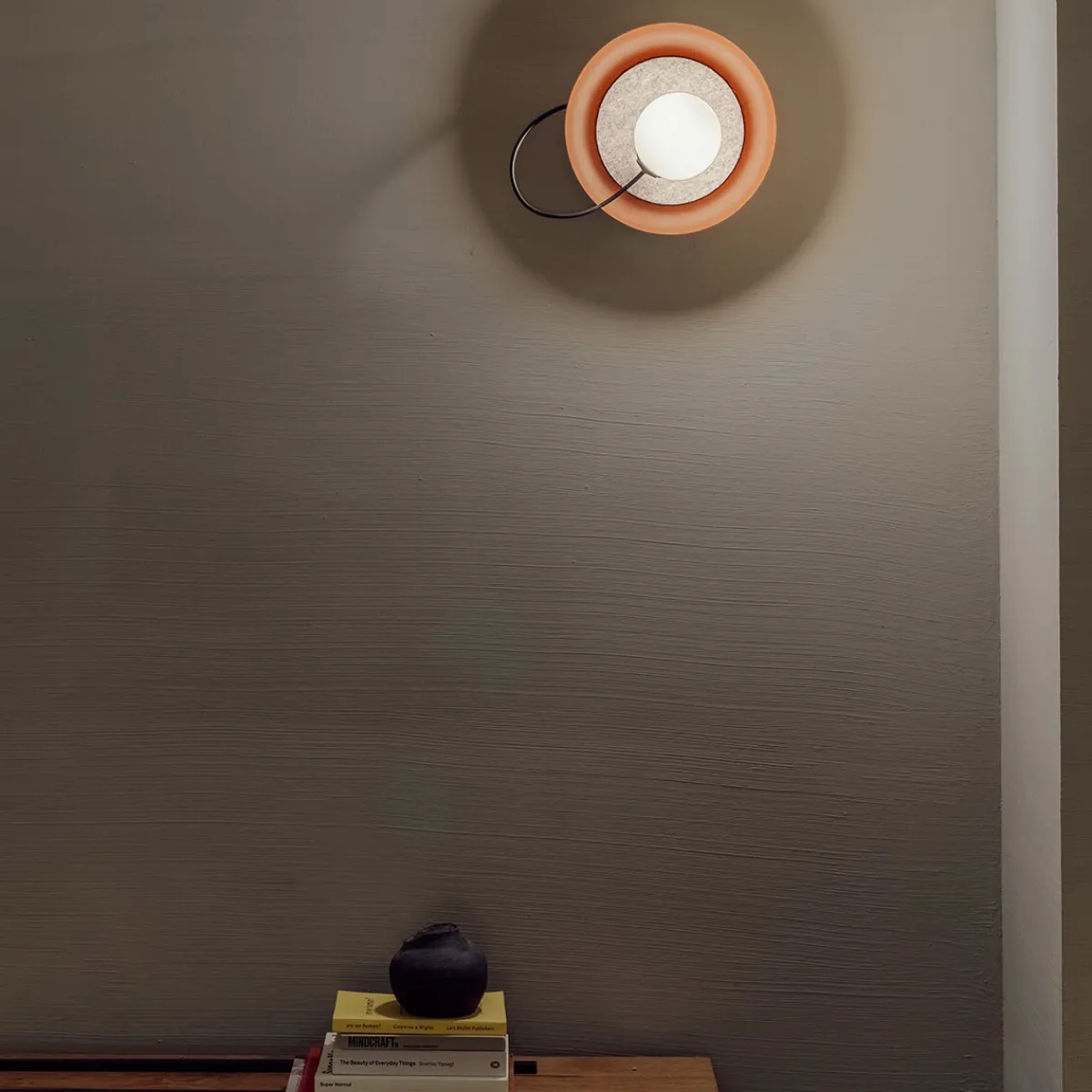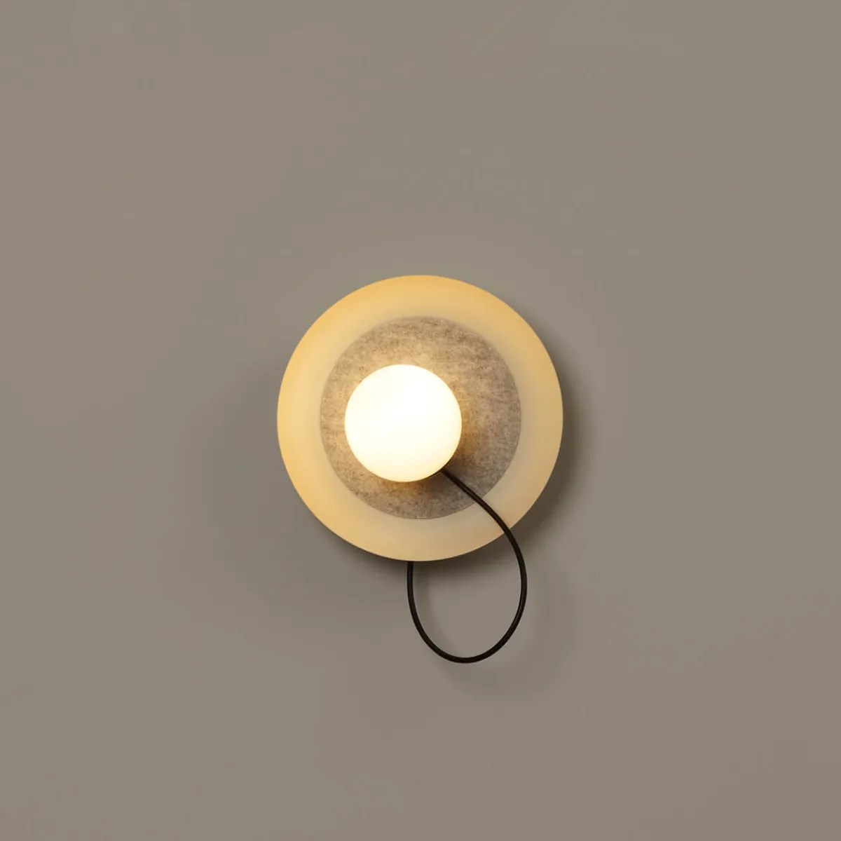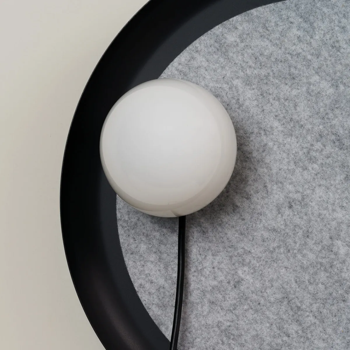 Die Wire Wandleuchte zur akzentuierten Beleuchtung besticht durch ihr modernes und rundes Design und wirkt sogar als akustischer Isolator dank Polyesterfilz-Polsterung. Die Lichtkugel lässt sich dank Magneten auf dem Filz verstellen und kann so entweder mittig oder gar seitlich platziert werden.