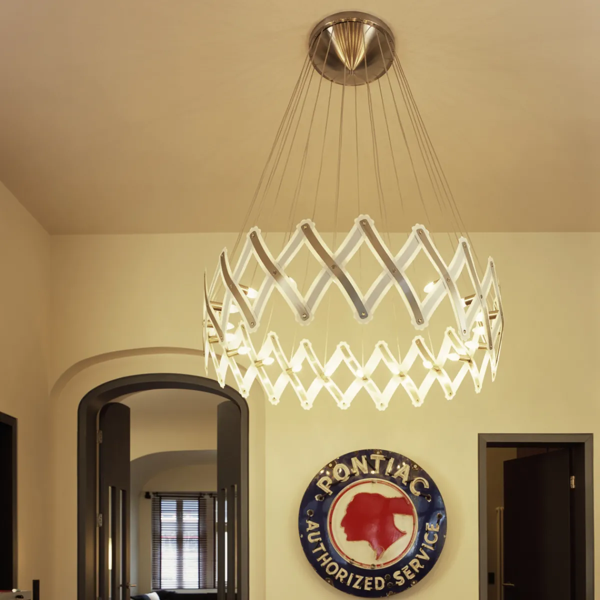 - Größenverstellbare Pendelleuchte aus gebürstetem Edelstahl