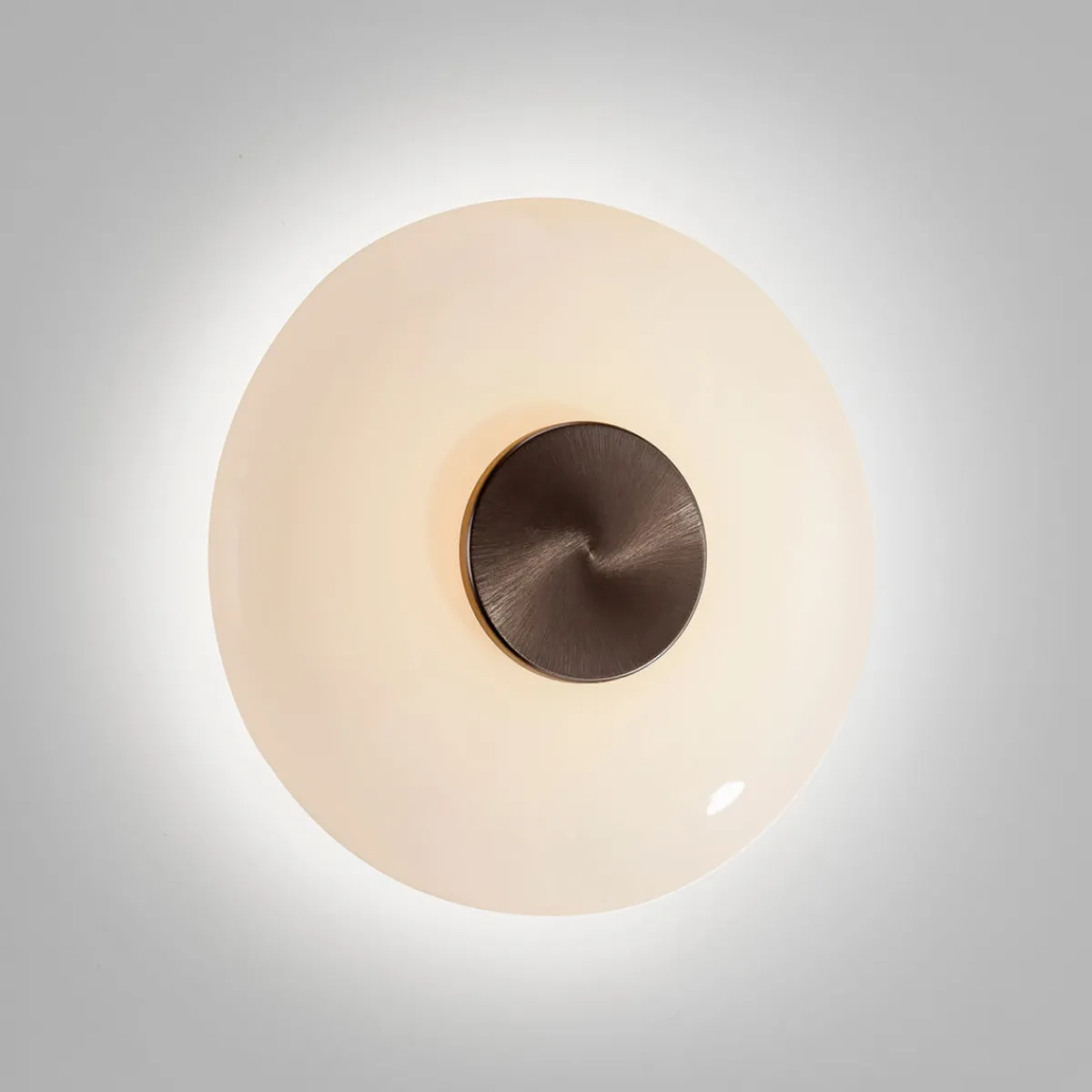 - Die Dunkelbraun eloxierte Variante hat einen weißen Opalglasschirm und die Grau eloxierte Variante hat ein Rauchglas als Schirm
