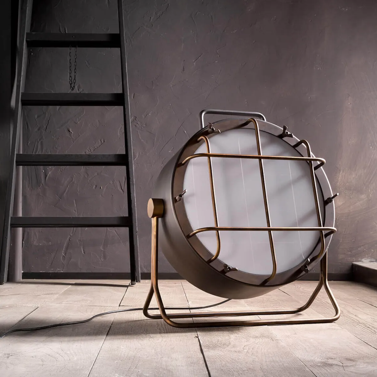 - Steh- / Bodenleuchte im Industrielook mit dem Aussehen eines Baustellenscheinwerfers