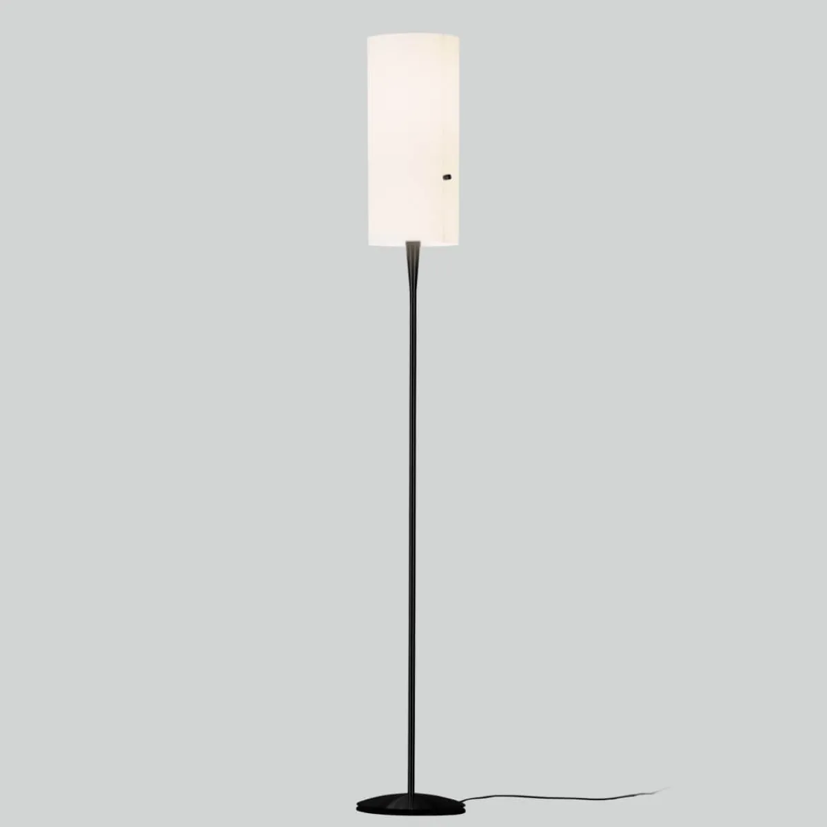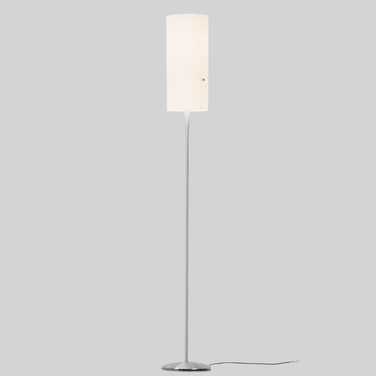 Der schwer entflammbare Chintzschirm der serien.lighting Club Floor M LED ist stoffkaschiert, kommt aber ohne herkömmliches Drahtgestell aus. Gehalten wird der zylindrische Körper von zwei schmalen Aluminiumprofilen. Eingeschaltet bilden sich so keine dunklen Kanten ab und es wird ein freundliches, atmosphärisches Licht erzeugt.