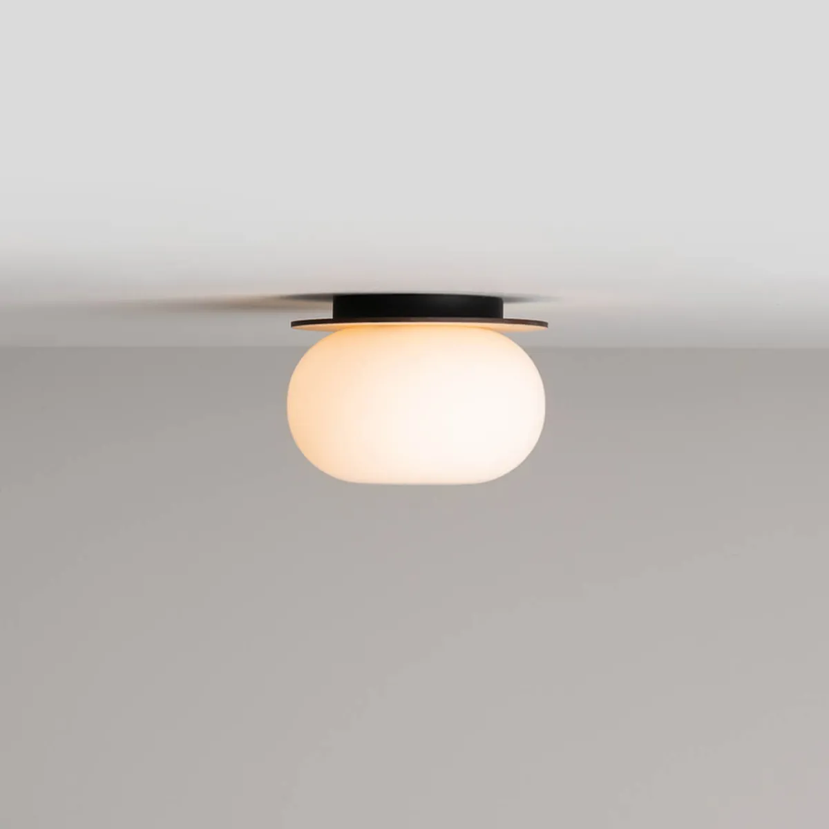 - Kleine Wand- / Deckenleuchte aus lackiertem Eschenholz und Opalglasdiffusor