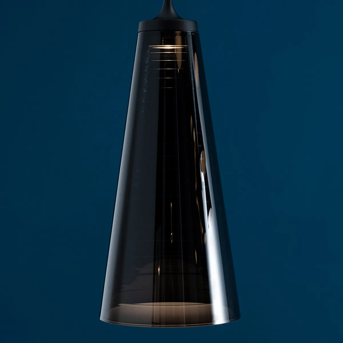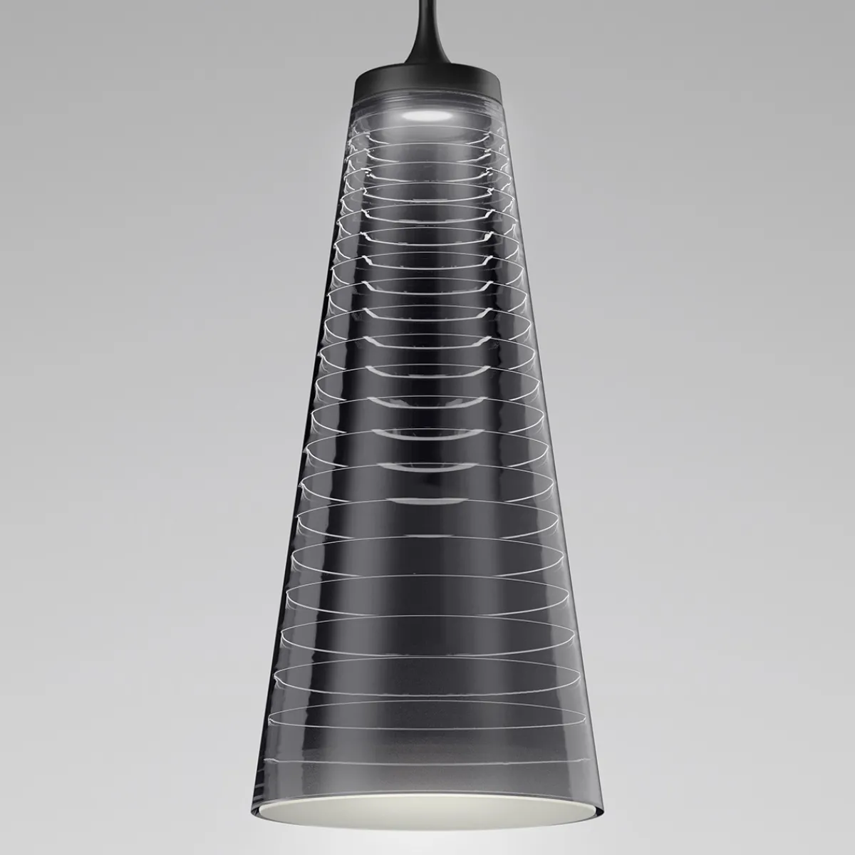 - Moderne Pendelleuchte mit einem zylindrischen Leuchtenschirm aus schwarz durchscheinendem Methacrylat