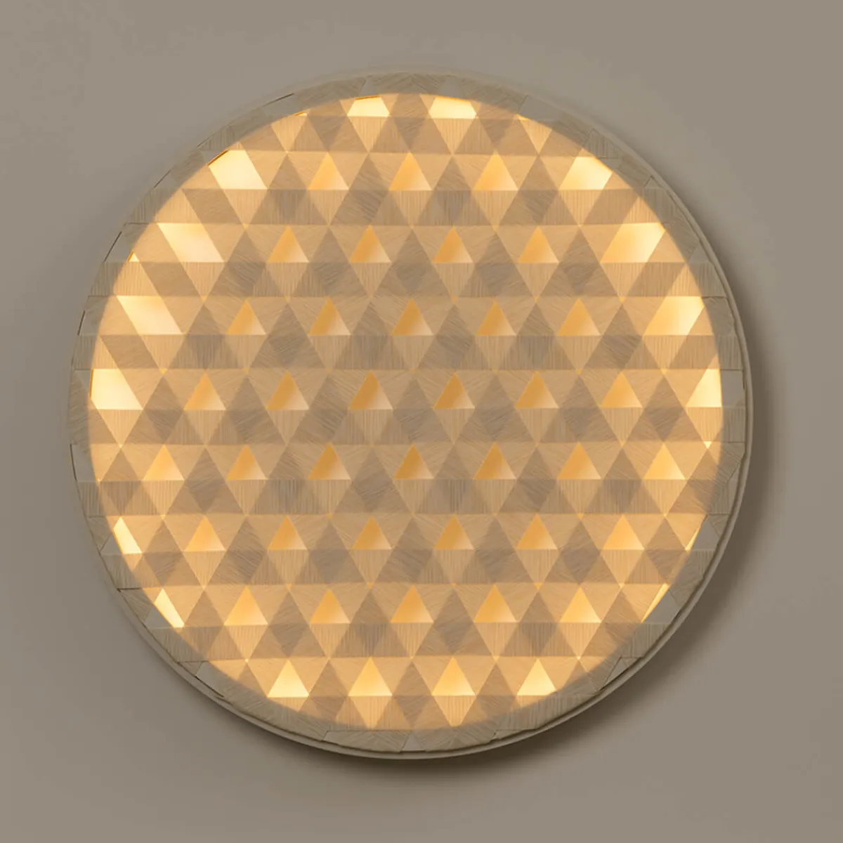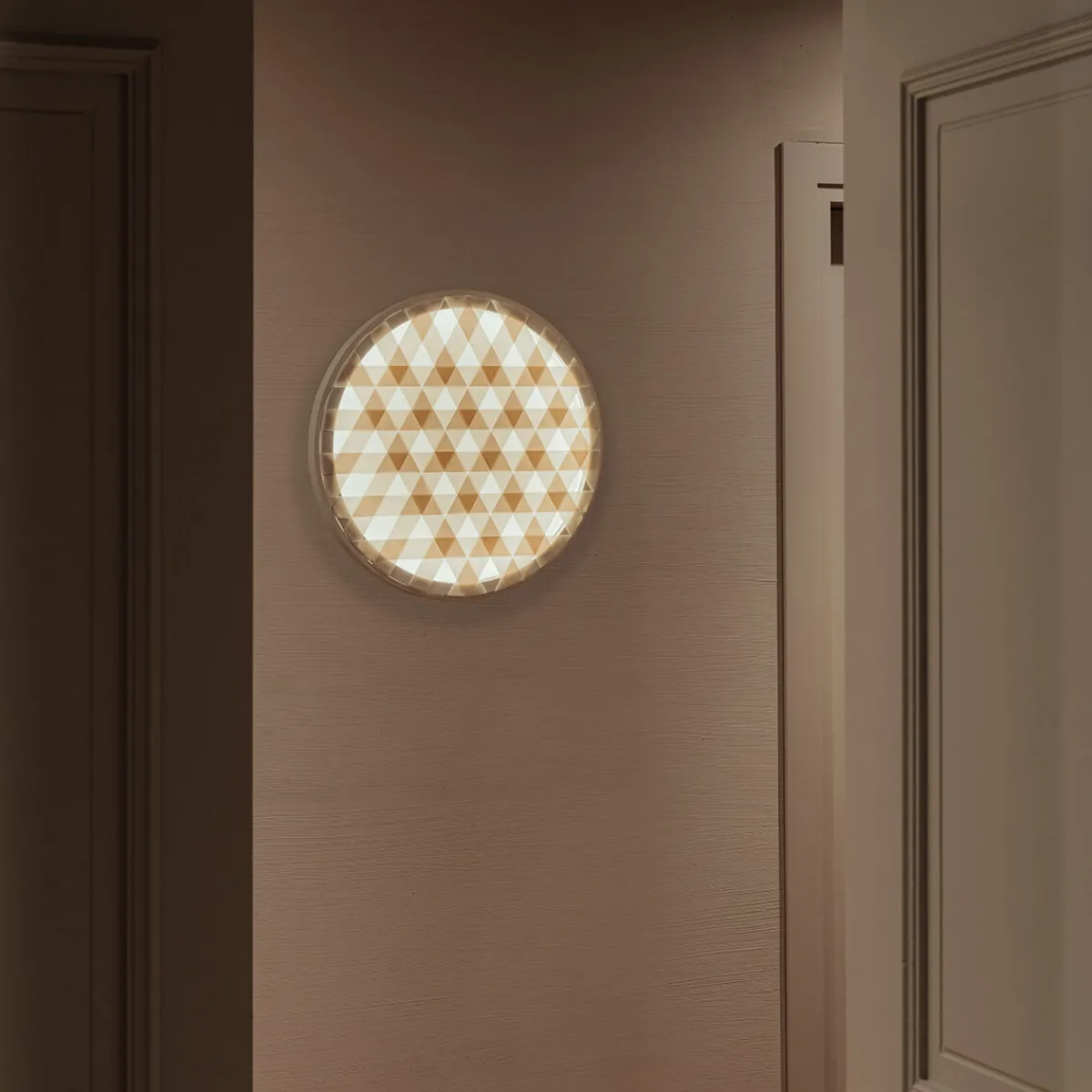 Dekorative Wandleuchte in drei verschiedenen Größen, handgefertigt und aus UV beständigem Material. Die Loom LED Wandlampe lässt sanftes Licht durchscheinen und sorgt für ein behagliches Gefühl in Wohn- und Schlafräumen.