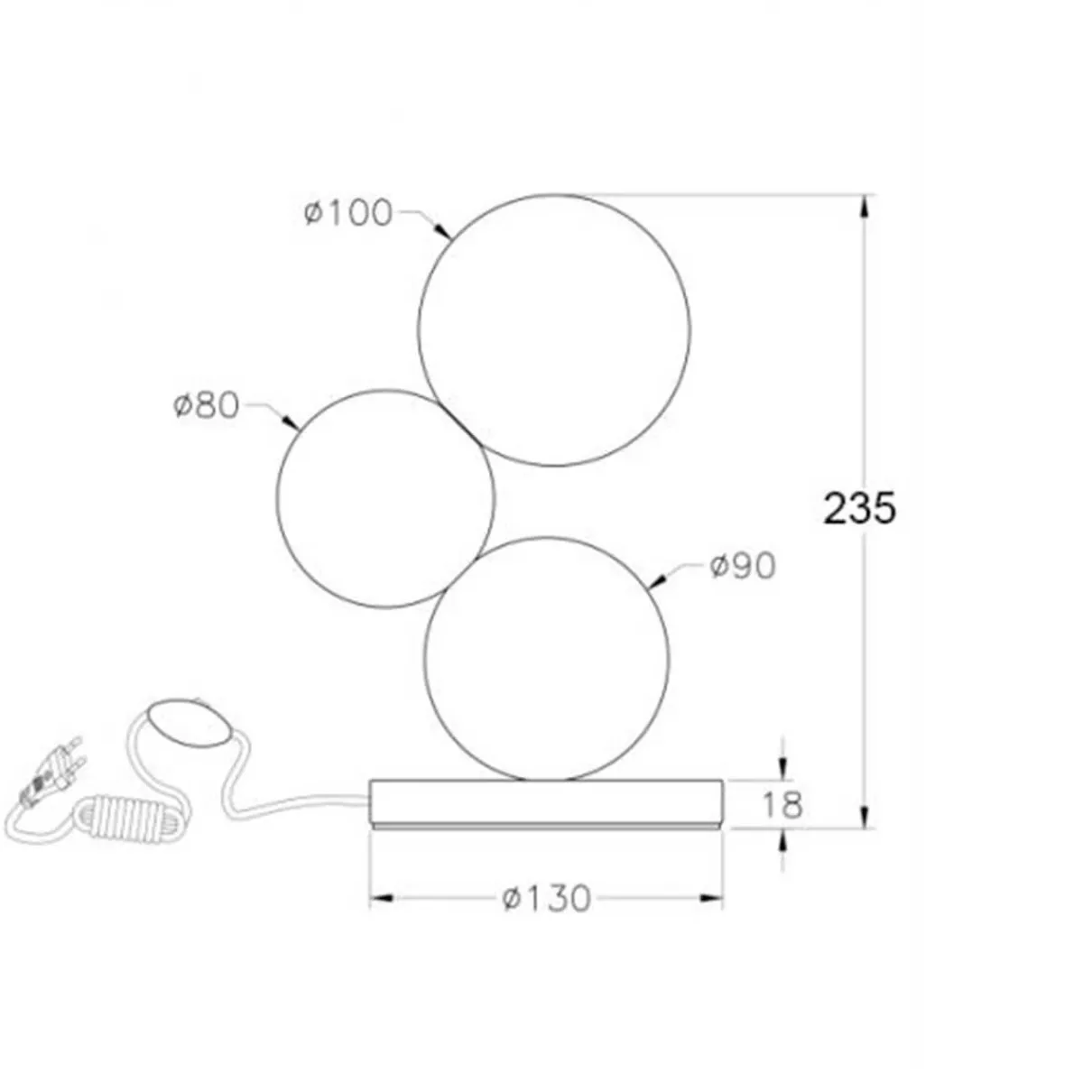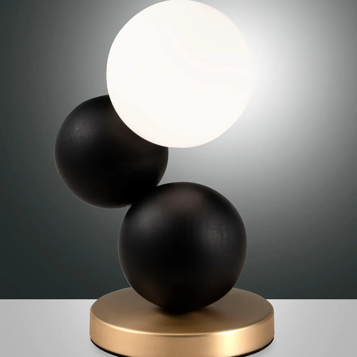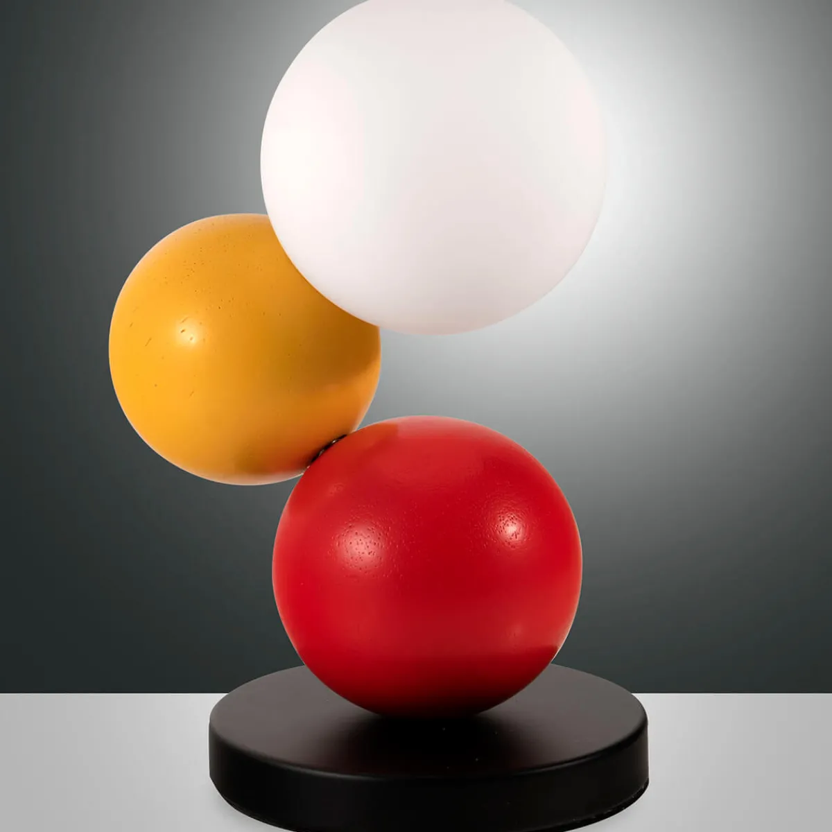 - Raffinierte Tischleuchte mit drei Kugeln, die leicht versetzt zueinander angeordnet sind