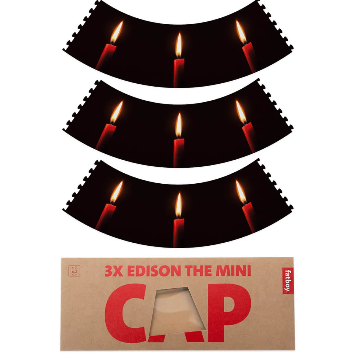 Mit den Mini Cappies Candles verleihen Sie Ihren Fatboy Edison the Mini Lampen eine romantische Note. Die Designschirme, die mit flackernden Kerzenflammen bedruckt sind, werden den beliebten Akkuleuchten einfach von oben her aufgesetzt. Bitte beachten Sie, dass die Cappies nicht vormontiert geliefert werden, sondern vor Gebrauch zusammengesteckt werden müssen.