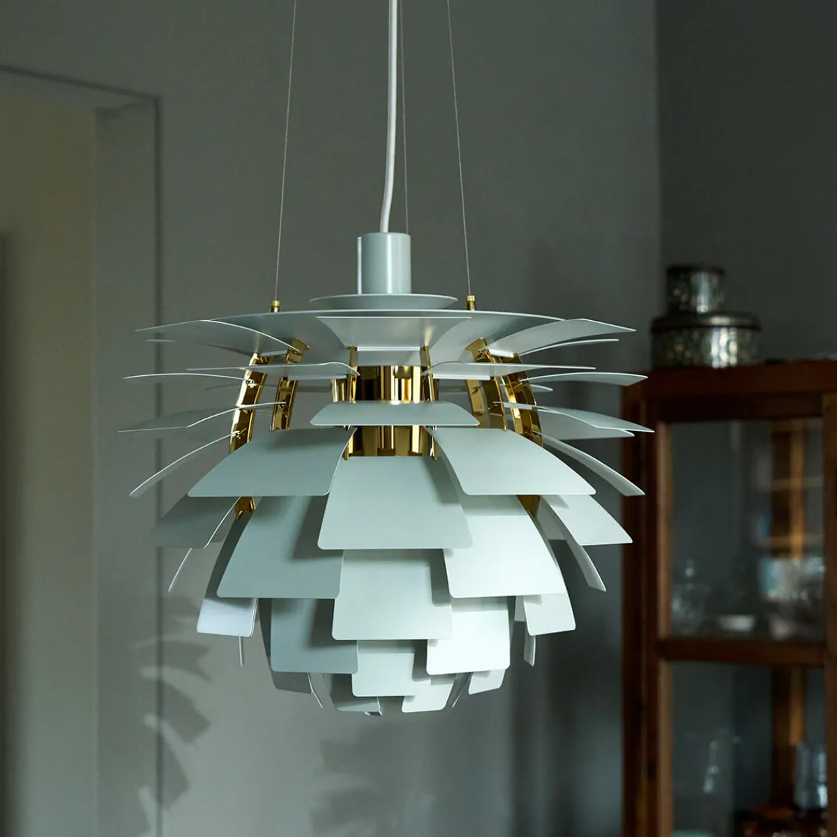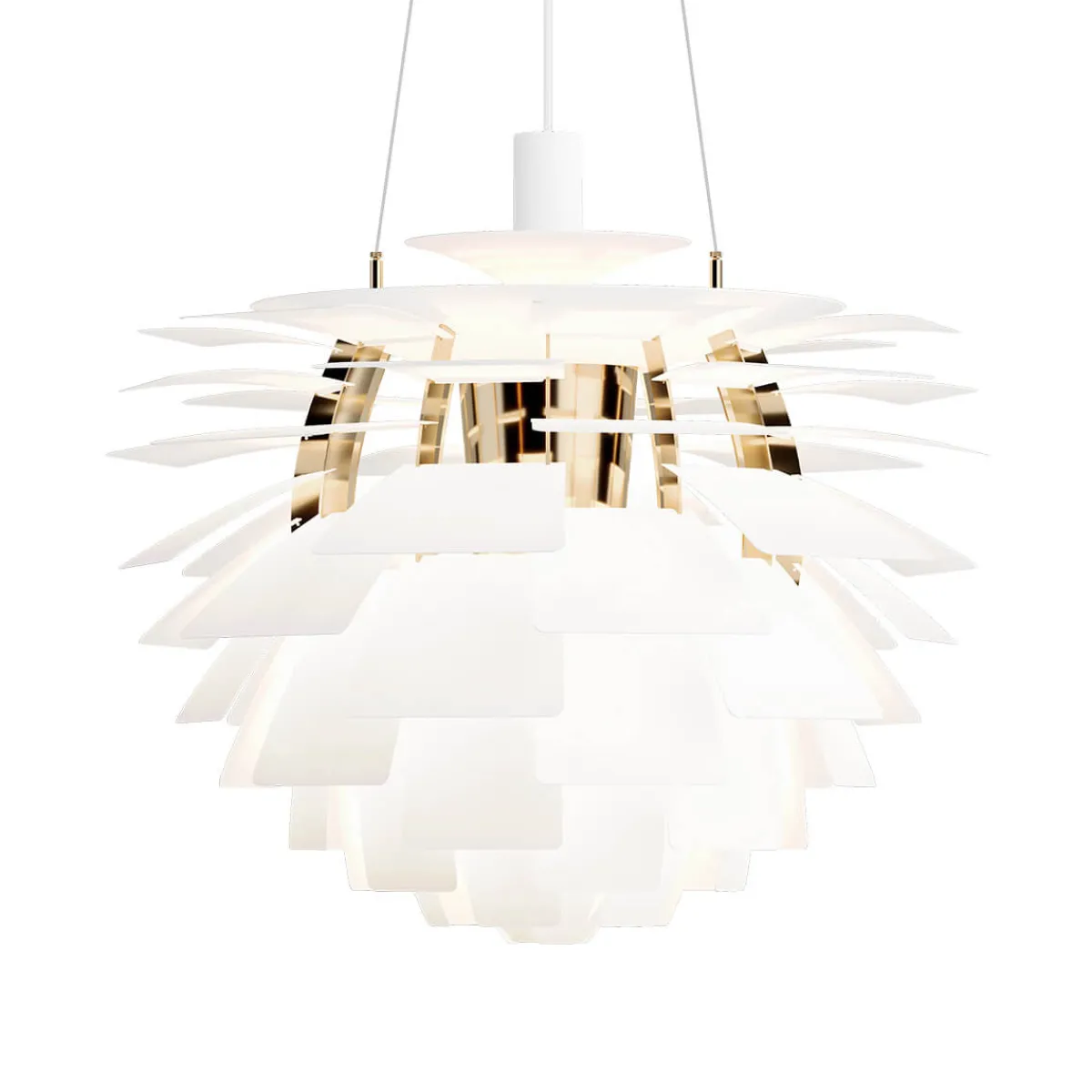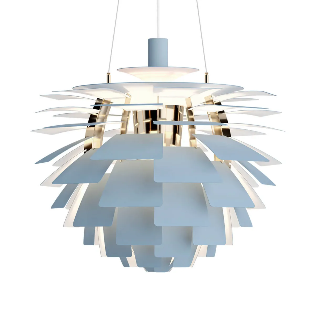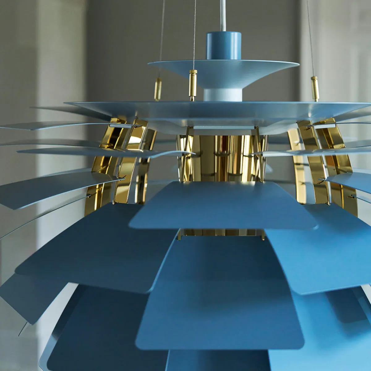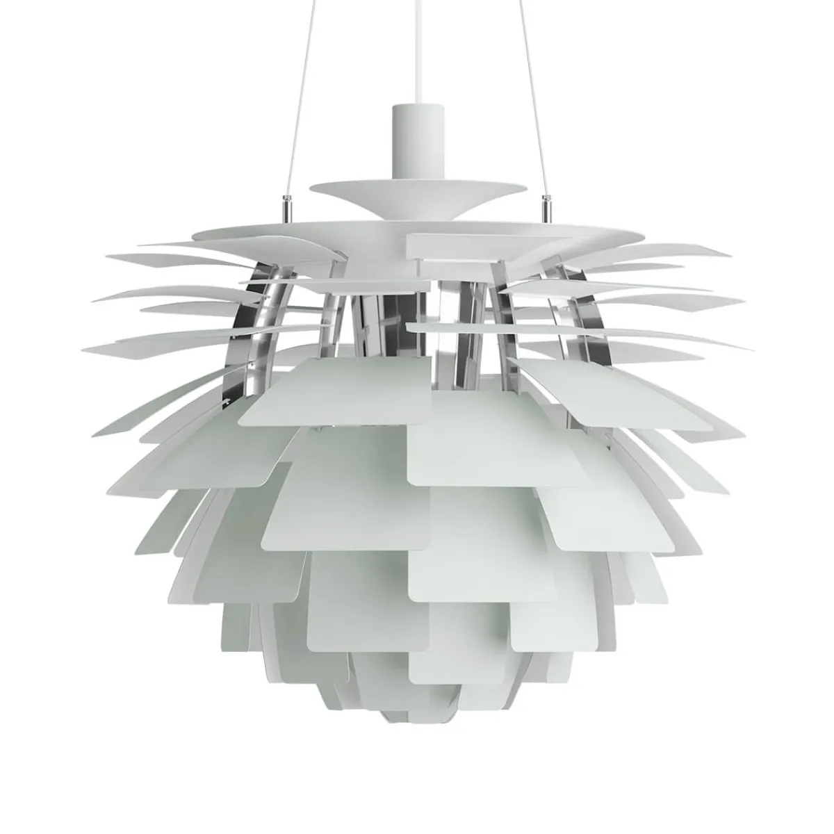 Die PH Artichoke Pendelleuchte von Louis Poulsen ist ein Meisterwerk des skandinavischen Designs – entworfen 1958 von Poul Henningsen für das Restaurant Langelinie Pavillonen in Kopenhagen. Bis heute gilt sie als stilprägende Designikone mit unverwechselbarer Formsprache. Ihr außergewöhnlicher Aufbau aus 72 präzise angeordneten Metallblättern sorgt für eine rundum blendfreie Lichtausstrahlung, die Räume auf besonders stimmungsvolle Weise in Szene setzt. Die Lichtabstrahlung erfolgt sowohl nach innen als auch nach außen und erzeugt so eine symmetrisch-sanfte Ausleuchtung mit dekorativer Wirkung.