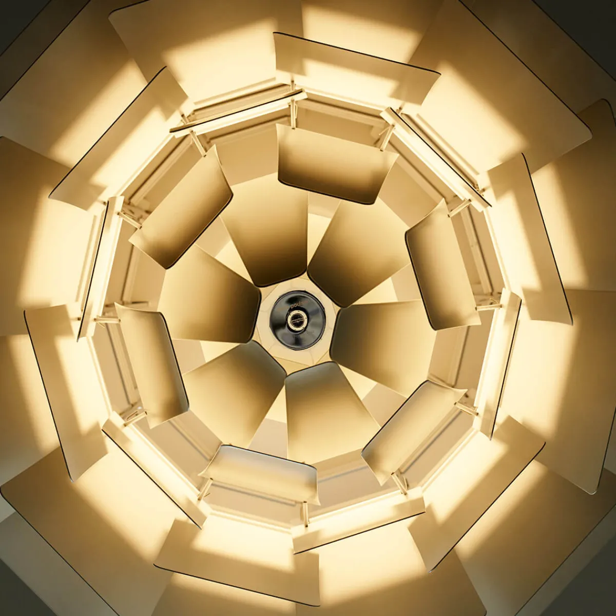 Die Schirme werden von hochwertigen Haltestrukturen in glanzvollem Chrom oder poliertem, metallisiertem Messing (PVD) ergänzt. Letzteres bewahrt dauerhaft seinen Glanz und verleiht warmen Farbtönen eine besondere Tiefe. Die Chrom-Variante hebt dagegen die Frische und Modernität der Farben hervor und verleiht der einen zeitgenössischen Charakter.
