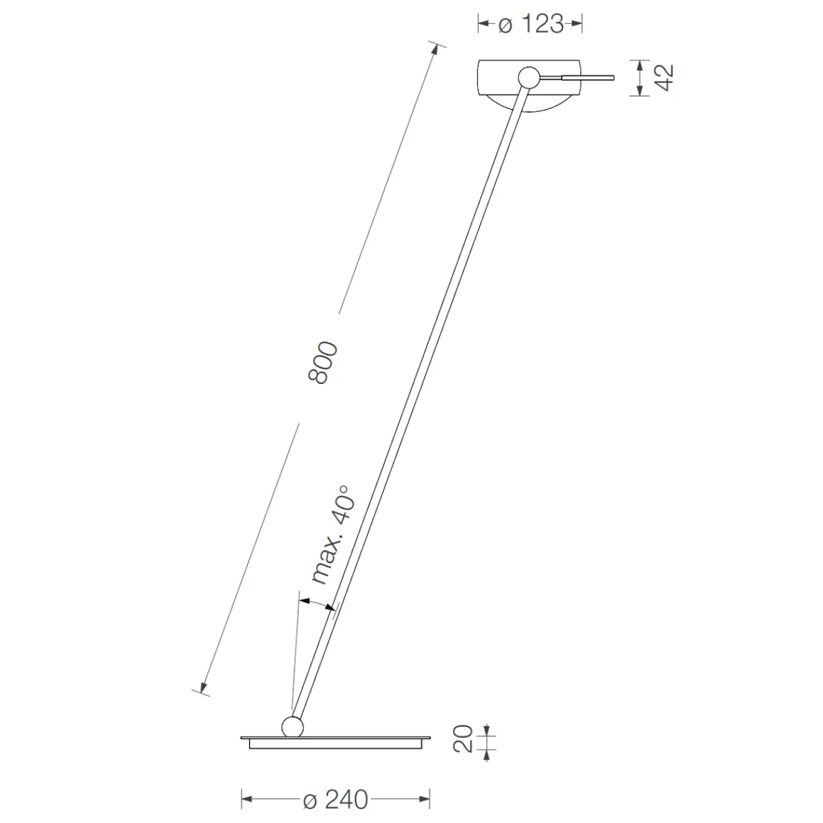 - Der Leuchtenfuß ist drehbar und um 40° neigbar