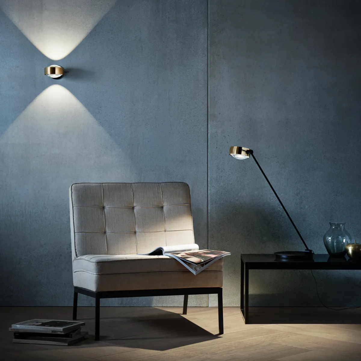 Die Sento C tavolo LED Tischleuchte ist mit zwei verschiedenen Ausrichtungen erhältlich, die sich an der geplanten Platzierung der orientieren: Möchten Sie das Produkt rechts vom zu erhellenden Objekt platzieren, wählen Sie die Ausführung „rechts“, soll die die Tischfläche von links her beleuchten, entscheiden Sie sich für die Ausführung „links“. Der am Leuchtenkopf befindliche Verstellstab ist dann stets zu Ihnen gewandt angebracht.