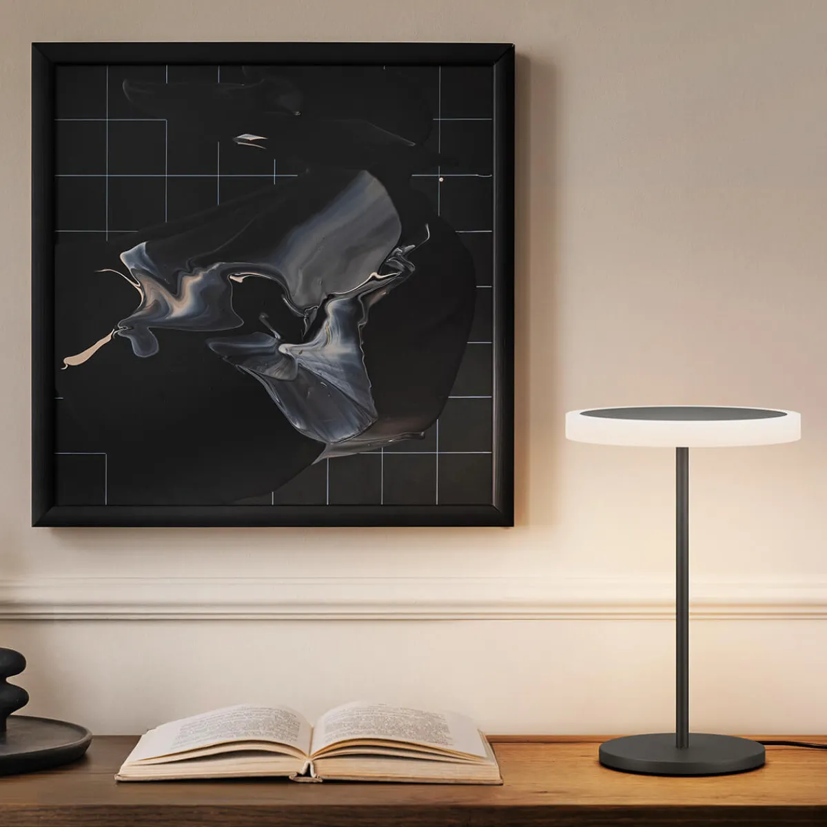 - Puristische Tischlampe mit edlem Oberflächenfinish