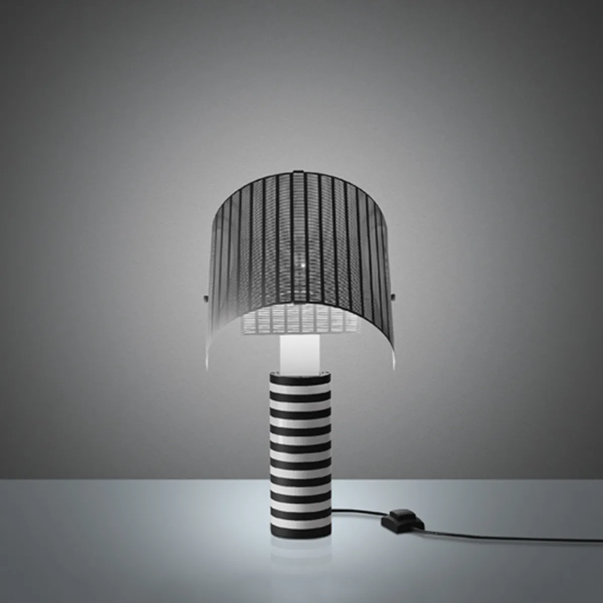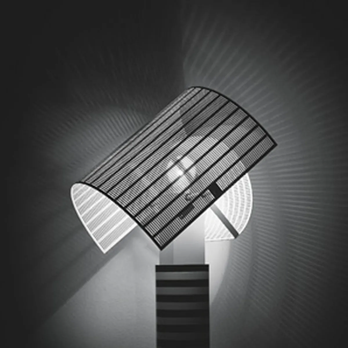 - Tischleuchte mit schwenkbarem Schirm aus gelochtem Stahlblech