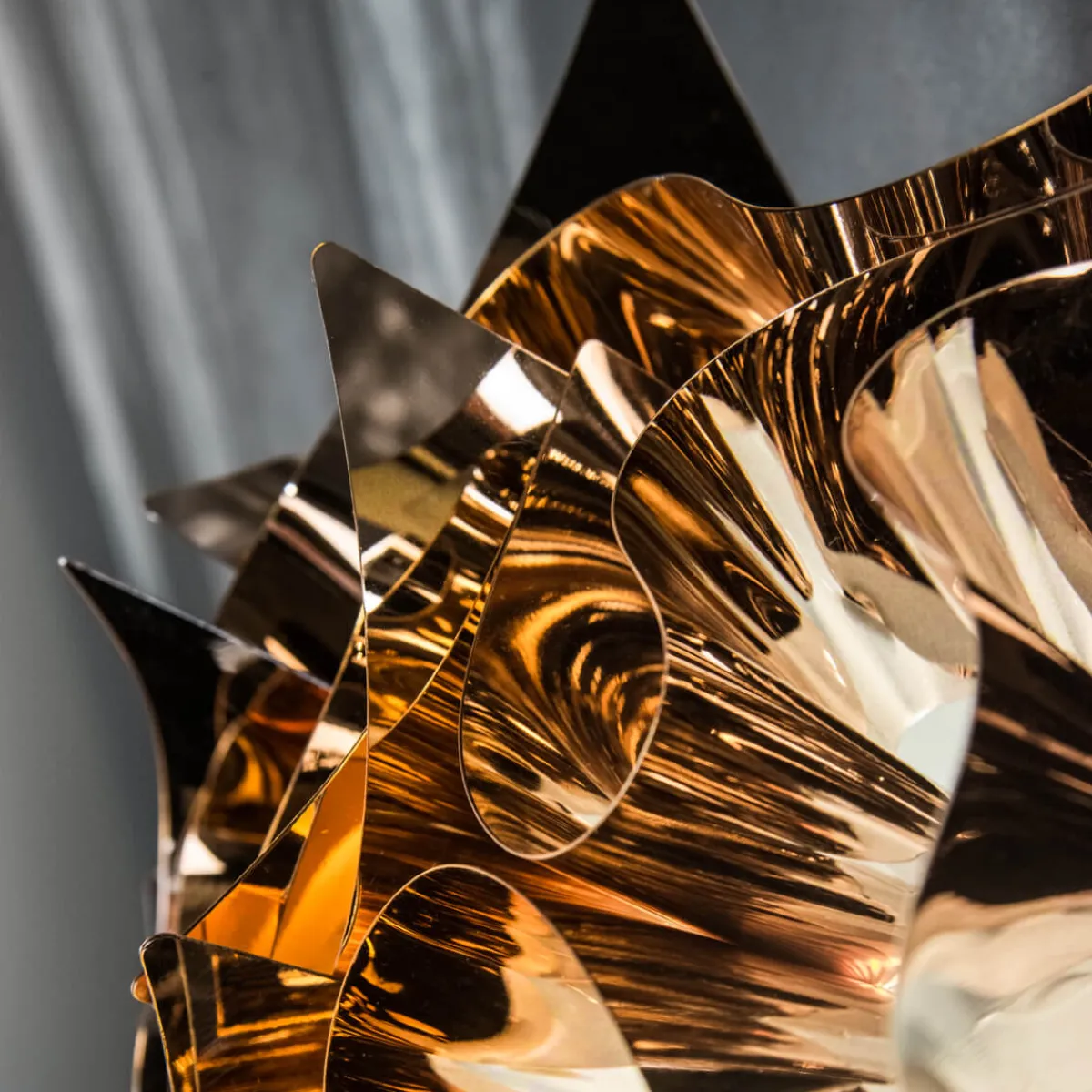 Gefertigt aus den patentierten Technopolymeren von Slamp, überzeugt die durch Widerstandsfähigkeit, UV- und Hitzebeständigkeit sowie eine umweltfreundliche und recycelbare Materialzusammensetzung. Während weißes Opalflex® für ein weiches, opalisierendes Licht sorgt, verleiht Lentiflex® dem Modell faszinierende, schillernde Lichtreflexe. In den edlen Ausführungen aus Goldflex® oder Copperflex® entfaltet die Veli Suspension Large eine besonders luxuriöse Wirkung.